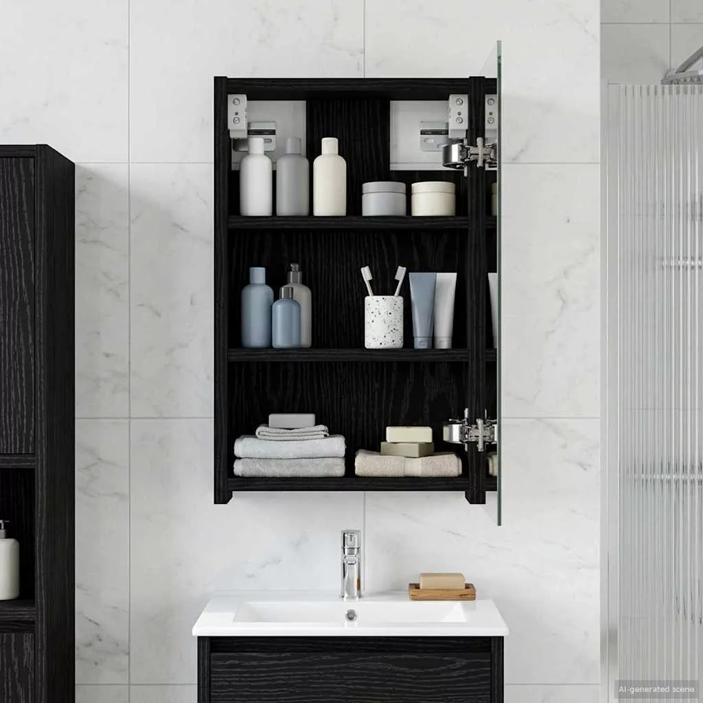 Fürdőszobai tükörszekrény Fekete tölgy 30 x 10,5 x 50 cm