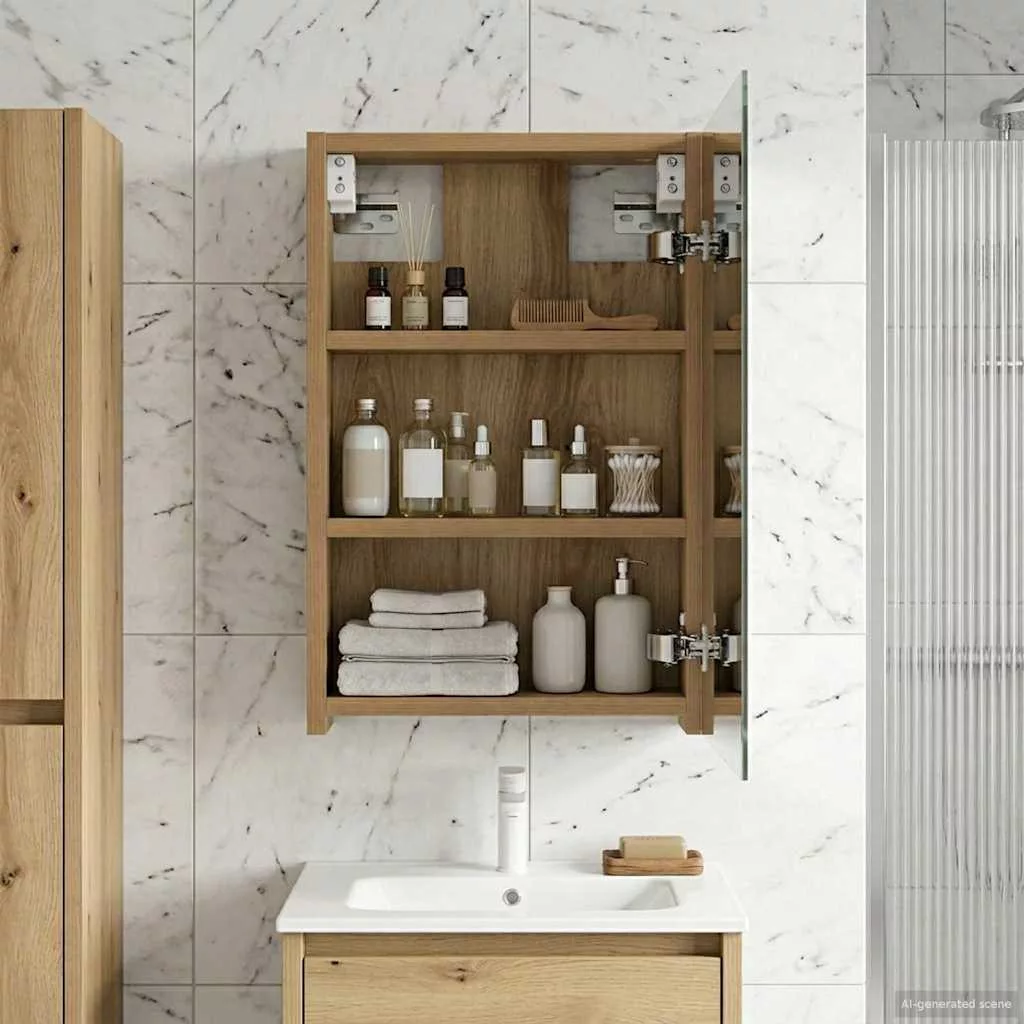 Ez a modern tükörszekrény szuper elegáns és funkcionális megoldás minden tárolási igényedre. Kortárs dizájnjával letisztult vonalak és minimalista stílus jellemzi, így bármilyen fürdőszoba kinézetét feldobja. Rengeteg helyet biztosít a nélkülözhetetlen dolgaidnak, miközben a kétirányú tükör praktikus és szuper esztétikus megoldást nyújt. Engineered Wood Construction: A szekrény masszív engineered wood anyagból készült, ami megbízható és tartós. Ez az anyag hosszú élettartamot garantál, és mindig megőrzi jó állapotát. A sima felület modern kisugárzást ad, amitől a fürdőszobád még szebb lesz. Two-Way Mirror: A szekrény kétirányú tükörrel van felszerelve, ami kettős hasznot ad. Az egyik oldalán sima tükörként működik, a másikon pedig diszkrét nézelődést tesz lehetővé, ami izgalmas megoldás. Ezt felhasználhatod mindennapos készülődéshez, de még a különleges helyzetekhez is. Wall-Mounted Design: A falra szerelhető dizájn rengeteg helyet spórol, így ideális kicsi fürdőszobákhoz is. A design letisztult és áramvonalas, miközben maximálisan kihasználja a teret. Tökéletes modern környezetbe, ahol fontos a praktikum. Board Shelves: Az engineered woodból készült polcok biztonságos és rendezett tárolást biztosítanak. Ezek remek helyet nyújtanak a piperecikkeknek vagy bármilyen egyéb fontos dolognak, amit gyorsan el kell érned. A polcok erősek, így nyugodtan rárakhatsz mindent, amire szükséged van a fürdőszobában. Hinge Door Access: A zsanéros ajtók egyszerő hozzáférést biztosítanak a tárolt dolgokhoz. Az ajtók simán nyílnak és záródnak, így nem zavarnak meg, amikor a fürdőszobádban vagy. Ez a praktikus funkció könnyebbé teszi a dolgaid elérését.