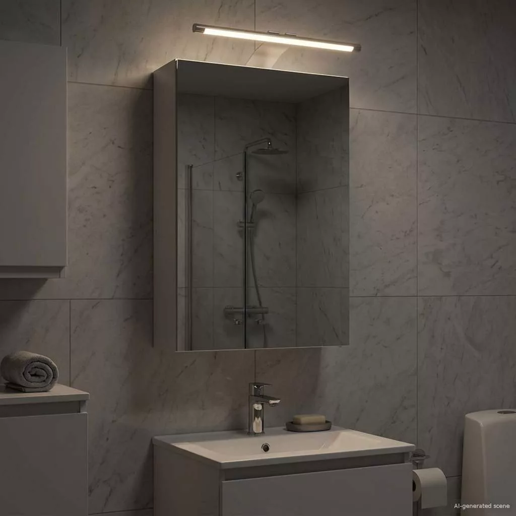 Ez a modern tükörszekrény szuper elegáns és funkcionális megoldás minden tárolási igényedre. Kortárs dizájnjával letisztult vonalak és minimalista stílus jellemzi, így bármilyen fürdőszoba kinézetét feldobja. Rengeteg helyet biztosít a nélkülözhetetlen dolgaidnak, miközben a kétirányú tükör praktikus és szuper esztétikus megoldást nyújt. Engineered Wood Construction: A szekrény masszív engineered wood anyagból készült, ami megbízható és tartós. Ez az anyag hosszú élettartamot garantál, és mindig megőrzi jó állapotát. A sima felület modern kisugárzást ad, amitől a fürdőszobád még szebb lesz. Two-Way Mirror: A szekrény kétirányú tükörrel van felszerelve, ami kettős hasznot ad. Az egyik oldalán sima tükörként működik, a másikon pedig diszkrét nézelődést tesz lehetővé, ami izgalmas megoldás. Ezt felhasználhatod mindennapos készülődéshez, de még a különleges helyzetekhez is. Wall-Mounted Design: A falra szerelhető dizájn rengeteg helyet spórol, így ideális kicsi fürdőszobákhoz is. A design letisztult és áramvonalas, miközben maximálisan kihasználja a teret. Tökéletes modern környezetbe, ahol fontos a praktikum. Board Shelves: Az engineered woodból készült polcok biztonságos és rendezett tárolást biztosítanak. Ezek remek helyet nyújtanak a piperecikkeknek vagy bármilyen egyéb fontos dolognak, amit gyorsan el kell érned. A polcok erősek, így nyugodtan rárakhatsz mindent, amire szükséged van a fürdőszobában. Hinge Door Access: A zsanéros ajtók egyszerő hozzáférést biztosítanak a tárolt dolgokhoz. Az ajtók simán nyílnak és záródnak, így nem zavarnak meg, amikor a fürdőszobádban vagy. Ez a praktikus funkció könnyebbé teszi a dolgaid elérését. Kérjük, vegye figyelembe, hogy csak tanúsított DC 5V bemenetet használjon. A magasabb feszültség túlmelegedést okozhat, és károsíthatja a készüléket, valamint túlhevülés és tűz kockázatát jelentheti. Ne csatlakoztassa ezt a terméket semmilyen más tápegységhez, mint amit a kézikönyvben, a névtáblán vagy a vidaXL kifejezetten ajánlott. Ezt a készüléket nem használhatják 14 évesnél fiatalabb gyermekek, valamint csökkent fizikai, érzékszervi vagy mentális képességekkel rendelkező személyek, vagy elektronikai eszközök használatában tapasztalatlan vagy tudás nélküli személyek. Az elektromosság veszélyes. A nem megfelelő telepítés, használat vagy módosítás (egyedi alkatrészek cseréje) a készülék károsodásához vezethet, áramütést és veszélyt okozva a felhasználónak. Ne működtesse ezt a terméket robbanásveszélyes atmoszférában, például gyúlékony folyadékok, gázok és por jelenlétében, vagy 50 Celsius foknál magasabb hőmérsékleten. Ne kapcsolja be a terméket, ha a csatlakozó kábel vagy tápegység láthatóan sérült. Ha a lámpa külső hajlékony kábele vagy vezetékje sérült, azt kizárólag a gyártó vagy annak szervizügynöke, illetve hasonló képesítéssel rendelkező személy cserélheti ki, hogy elkerülje a veszélyt. A telepítés és karbantartás alatt kapcsolja ki az áramot. Győződjön meg arról, hogy a fényforrások lehűltek. Ennek a lámpatestnek a fényforrása nem cserélhető; ha a fényforrás elérte élettartamának végét, az egész lámpát ki kell cserélni. Csak belső használatra, ne használja kültéren.