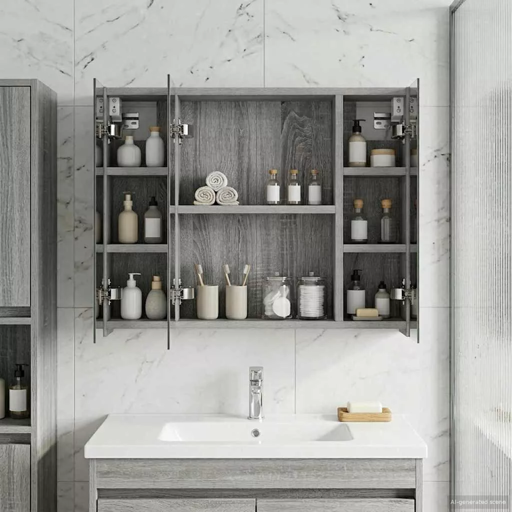 Ez a Modern Fürdőszobai Tükörszekrény szuper kombinálja a letisztult formát és funkcionális kialakítást. Kortárs fürdőszobákhoz készült, letisztult vonalakkal, a különleges visszatükröződő tükör pedig hozzáadja a stílust és sokoldalúságot. Remek választás, ha modern dizájnnal szeretnéd feldobni a fürdőszobádat és még bőven tárolóhelyet is keresel. Anyagok: Engineered wood-ból készült, amely kombinálja a tartósságot és a szuper kinézetet. Robusztus, jól bírja a nedvességet – tökéletes választás fürdőszobai környezethez, így tovább is bírja, csökkentve a cserék szükségességét. Bemelegített alkatrészek: A tükörszekrény tárolópolcokat és zsanéros ajtókat tartalmaz, megkönnyítve a fürdőszobai dolgok rendszerezését. A polcok sokféle tárgyat el tudnak rejteni, a piperecikkektől kezdve a törölközőkig, míg a zsanéros ajtók zökkenőmentes nyitást és zárást garantálnak a használat során. A tükör pedig kettős visszaverődő funkcióval rendelkezik. Funkciók/Használat/Tervezés: A kétoldalas tükör növeli a szekrény használhatóságát, tökéletes sminkhez vagy borotválkozáshoz. A falra szerelhető kialakítás ideális, ha térmegtakarításra van szükséged, miközben bőséges tárolást is nyújt. Ajánlott használat: Szuper választás, ha stílusos és praktikus fürdőszobákat szeretnél. Akár otthoni, akár vendéglátóhelyekhez, ez a szekrény könnyedén feldobja a teret, miközben a napi szükségleteket praktikus módon tárolja. Rugalmas felhasználása miatt hosszan tartó megoldás lehet a téltől a tavaszig. Karbantartás: Tartsd tisztán egy enyhe tisztítószerrel, hogy a felületek ragyogóak maradjanak. Rendszeresen töröld le az üveg ajtókat, hogy tisztán tartsd az áttetszőséget. Ne felejtsd el a zsanérokat is néha megkenni! Ezek a lépések biztosítják, hogy a termék hosszú távon is használható és jól néz ki.