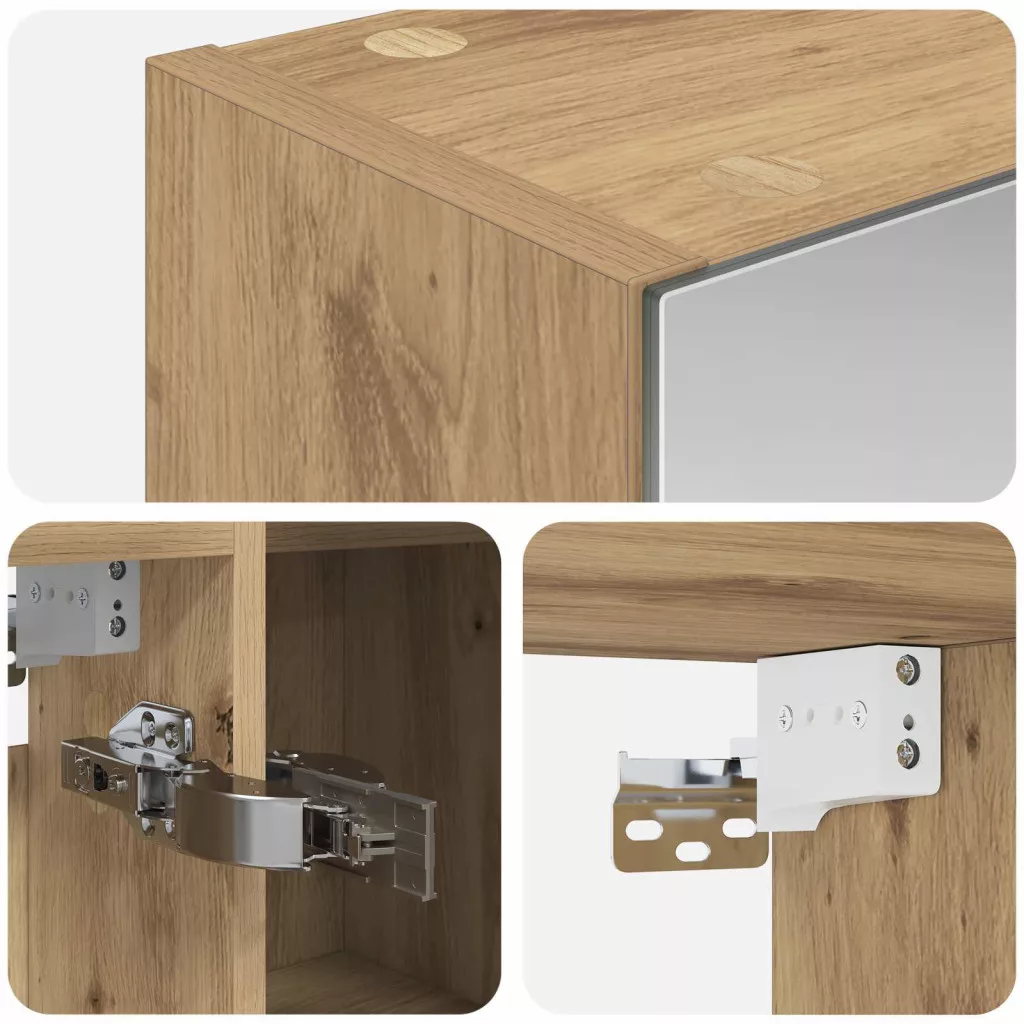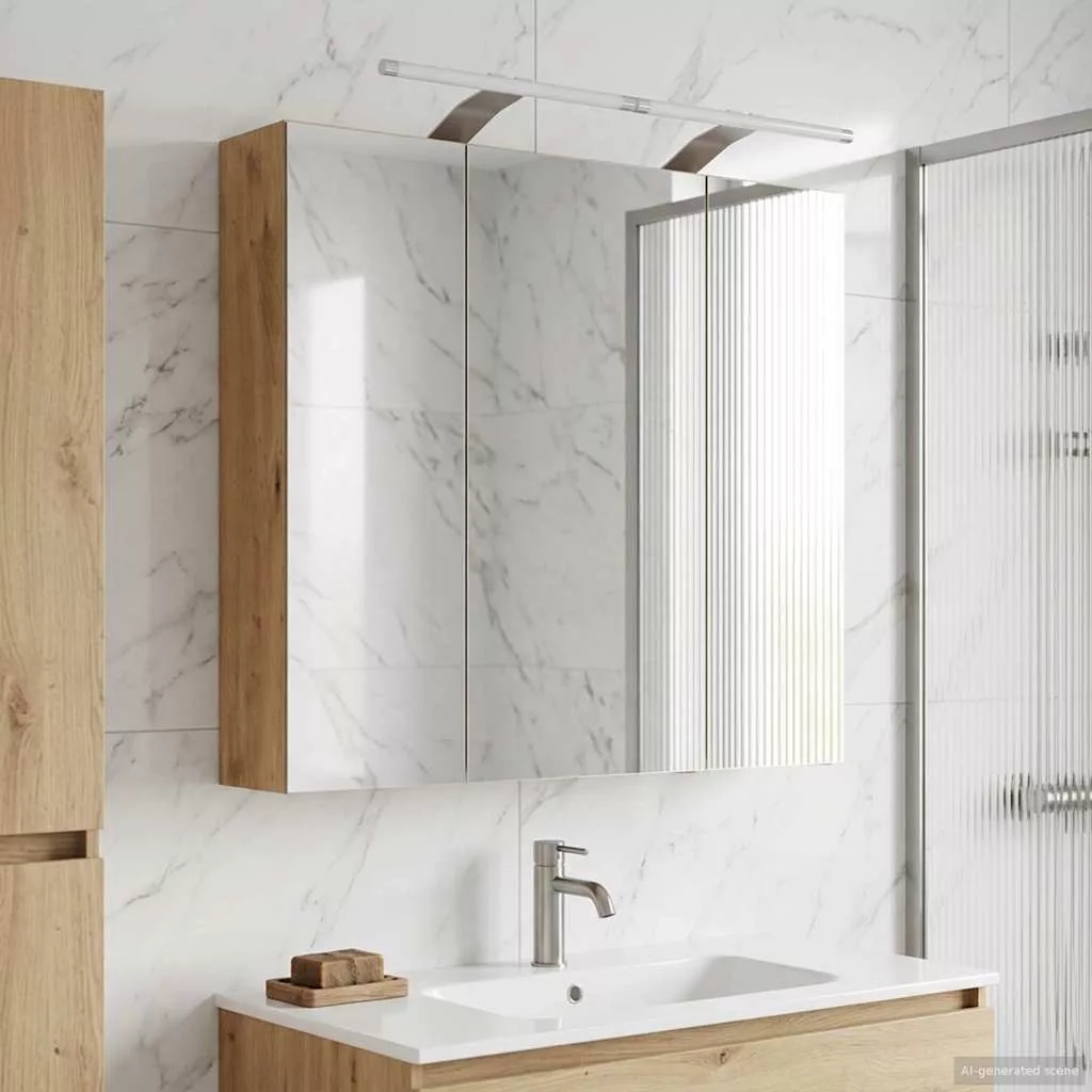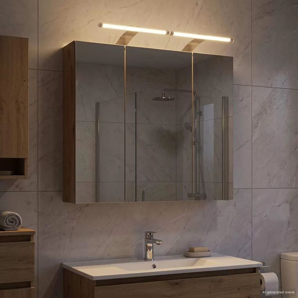 Ez a Modern Fürdőszobai Tükörszekrény szuper kombinálja a letisztult formát és funkcionális kialakítást. Kortárs fürdőszobákhoz készült, letisztult vonalakkal, a különleges visszatükröződő tükör pedig hozzáadja a stílust és sokoldalúságot. Remek választás, ha modern dizájnnal szeretnéd feldobni a fürdőszobádat és még bőven tárolóhelyet is keresel. Anyagok: Engineered wood-ból készült, amely kombinálja a tartósságot és a szuper kinézetet. Robusztus, jól bírja a nedvességet – tökéletes választás fürdőszobai környezethez, így tovább is bírja, csökkentve a cserék szükségességét. Bemelegített alkatrészek: A tükörszekrény tárolópolcokat és zsanéros ajtókat tartalmaz, megkönnyítve a fürdőszobai dolgok rendszerezését. A polcok sokféle tárgyat el tudnak rejteni, a piperecikkektől kezdve a törölközőkig, míg a zsanéros ajtók zökkenőmentes nyitást és zárást garantálnak a használat során. A tükör pedig kettős visszaverődő funkcióval rendelkezik. Funkciók/Használat/Tervezés: A kétoldalas tükör növeli a szekrény használhatóságát, tökéletes sminkhez vagy borotválkozáshoz. A falra szerelhető kialakítás ideális, ha térmegtakarításra van szükséged, miközben bőséges tárolást is nyújt. Ajánlott használat: Szuper választás, ha stílusos és praktikus fürdőszobákat szeretnél. Akár otthoni, akár vendéglátóhelyekhez, ez a szekrény könnyedén feldobja a teret, miközben a napi szükségleteket praktikus módon tárolja. Rugalmas felhasználása miatt hosszan tartó megoldás lehet a téltől a tavaszig. Karbantartás: Tartsd tisztán egy enyhe tisztítószerrel, hogy a felületek ragyogóak maradjanak. Rendszeresen töröld le az üveg ajtókat, hogy tisztán tartsd az áttetszőséget. Ne felejtsd el a zsanérokat is néha megkenni! Ezek a lépések biztosítják, hogy a termék hosszú távon is használható és jól néz ki. Kérjük, vegye figyelembe, hogy csak tanúsított DC 5V bemenetet használjon. A magasabb feszültség túlmelegedést okozhat, és károsíthatja a készüléket, valamint túlhevülés és tűz kockázatát jelentheti. Ne csatlakoztassa ezt a terméket semmilyen más tápegységhez, mint amit a kézikönyvben, a névtáblán vagy a vidaXL kifejezetten ajánlott. Ezt a készüléket nem használhatják 14 évesnél fiatalabb gyermekek, valamint csökkent fizikai, érzékszervi vagy mentális képességekkel rendelkező személyek, vagy elektronikai eszközök használatában tapasztalatlan vagy tudás nélküli személyek. Az elektromosság veszélyes. A nem megfelelő telepítés, használat vagy módosítás (egyedi alkatrészek cseréje) a készülék károsodásához vezethet, áramütést és veszélyt okozva a felhasználónak. Ne működtesse ezt a terméket robbanásveszélyes atmoszférában, például gyúlékony folyadékok, gázok és por jelenlétében, vagy 50 Celsius foknál magasabb hőmérsékleten. Ne kapcsolja be a terméket, ha a csatlakozó kábel vagy tápegység láthatóan sérült. Ha a lámpa külső hajlékony kábele vagy vezetékje sérült, azt kizárólag a gyártó vagy annak szervizügynöke, illetve hasonló képesítéssel rendelkező személy cserélheti ki, hogy elkerülje a veszélyt. A telepítés és karbantartás alatt kapcsolja ki az áramot. Győződjön meg arról, hogy a fényforrások lehűltek. Ennek a lámpatestnek a fényforrása nem cserélhető; ha a fényforrás elérte élettartamának végét, az egész lámpát ki kell cserélni. Csak belső használatra, ne használja kültéren.