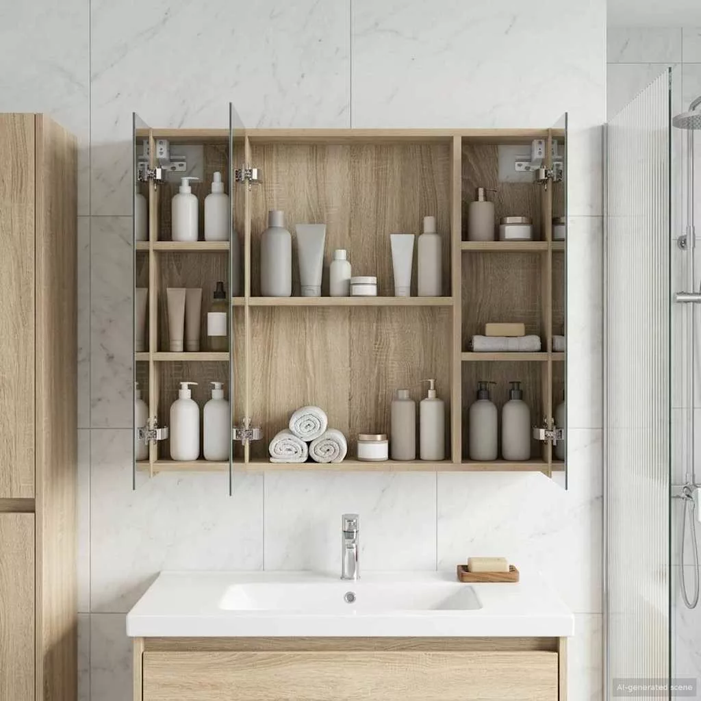 Ez a Modern Fürdőszobai Tükörszekrény szuper kombinálja a letisztult formát és funkcionális kialakítást. Kortárs fürdőszobákhoz készült, letisztult vonalakkal, a különleges visszatükröződő tükör pedig hozzáadja a stílust és sokoldalúságot. Remek választás, ha modern dizájnnal szeretnéd feldobni a fürdőszobádat és még bőven tárolóhelyet is keresel. Anyagok: Engineered wood-ból készült, amely kombinálja a tartósságot és a szuper kinézetet. Robusztus, jól bírja a nedvességet – tökéletes választás fürdőszobai környezethez, így tovább is bírja, csökkentve a cserék szükségességét. Bemelegített alkatrészek: A tükörszekrény tárolópolcokat és zsanéros ajtókat tartalmaz, megkönnyítve a fürdőszobai dolgok rendszerezését. A polcok sokféle tárgyat el tudnak rejteni, a piperecikkektől kezdve a törölközőkig, míg a zsanéros ajtók zökkenőmentes nyitást és zárást garantálnak a használat során. A tükör pedig kettős visszaverődő funkcióval rendelkezik. Funkciók/Használat/Tervezés: A kétoldalas tükör növeli a szekrény használhatóságát, tökéletes sminkhez vagy borotválkozáshoz. A falra szerelhető kialakítás ideális, ha térmegtakarításra van szükséged, miközben bőséges tárolást is nyújt. Ajánlott használat: Szuper választás, ha stílusos és praktikus fürdőszobákat szeretnél. Akár otthoni, akár vendéglátóhelyekhez, ez a szekrény könnyedén feldobja a teret, miközben a napi szükségleteket praktikus módon tárolja. Rugalmas felhasználása miatt hosszan tartó megoldás lehet a téltől a tavaszig. Karbantartás: Tartsd tisztán egy enyhe tisztítószerrel, hogy a felületek ragyogóak maradjanak. Rendszeresen töröld le az üveg ajtókat, hogy tisztán tartsd az áttetszőséget. Ne felejtsd el a zsanérokat is néha megkenni! Ezek a lépések biztosítják, hogy a termék hosszú távon is használható és jól néz ki.