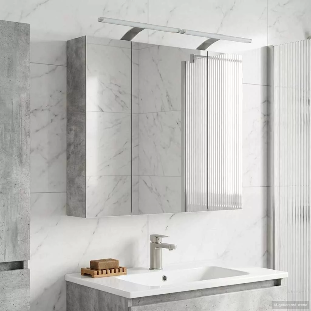 Fürdőszobai tükörszekrény Beton Szürke 80 x 14.5 x 70 cm