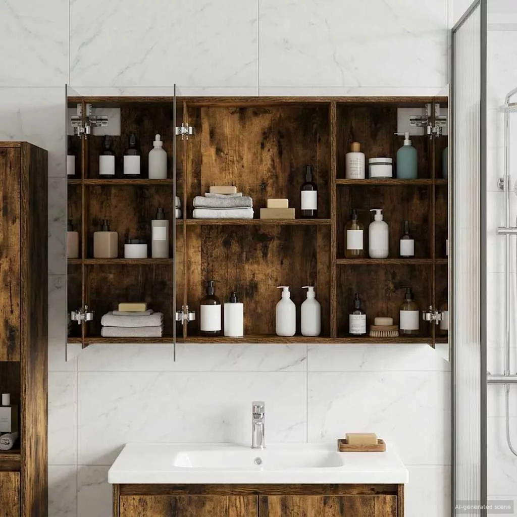 Fürdőszobai tükörszekrény Füstölt tölgy 100 x 14,5 x 70 cm