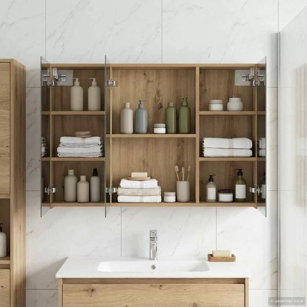 Ez a Modern Fürdőszobai Tükörszekrény szuper kombinálja a letisztult formát és funkcionális kialakítást. Kortárs fürdőszobákhoz készült, letisztult vonalakkal, a különleges visszatükröződő tükör pedig hozzáadja a stílust és sokoldalúságot. Remek választás, ha modern dizájnnal szeretnéd feldobni a fürdőszobádat és még bőven tárolóhelyet is keresel. Anyagok: Engineered wood-ból készült, amely kombinálja a tartósságot és a szuper kinézetet. Robusztus, jól bírja a nedvességet – tökéletes választás fürdőszobai környezethez, így tovább is bírja, csökkentve a cserék szükségességét. Bemelegített alkatrészek: A tükörszekrény tárolópolcokat és zsanéros ajtókat tartalmaz, megkönnyítve a fürdőszobai dolgok rendszerezését. A polcok sokféle tárgyat el tudnak rejteni, a piperecikkektől kezdve a törölközőkig, míg a zsanéros ajtók zökkenőmentes nyitást és zárást garantálnak a használat során. A tükör pedig kettős visszaverődő funkcióval rendelkezik. Funkciók/Használat/Tervezés: A kétoldalas tükör növeli a szekrény használhatóságát, tökéletes sminkhez vagy borotválkozáshoz. A falra szerelhető kialakítás ideális, ha térmegtakarításra van szükséged, miközben bőséges tárolást is nyújt. Ajánlott használat: Szuper választás, ha stílusos és praktikus fürdőszobákat szeretnél. Akár otthoni, akár vendéglátóhelyekhez, ez a szekrény könnyedén feldobja a teret, miközben a napi szükségleteket praktikus módon tárolja. Rugalmas felhasználása miatt hosszan tartó megoldás lehet a téltől a tavaszig. Karbantartás: Tartsd tisztán egy enyhe tisztítószerrel, hogy a felületek ragyogóak maradjanak. Rendszeresen töröld le az üveg ajtókat, hogy tisztán tartsd az áttetszőséget. Ne felejtsd el a zsanérokat is néha megkenni! Ezek a lépések biztosítják, hogy a termék hosszú távon is használható és jól néz ki.