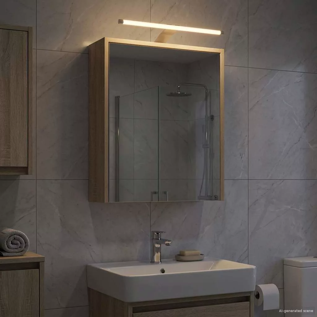 Ez a modern fürdőszobai tükörszekrény gyönyörűen ötvözi a stílust és a funkciót, téglalap alakú dizájnjával, ami tökéletesen illik a kortárs fürdőszobákhoz. Egyszerű és hasznos, könnyen beilleszthető bármilyen fürdőszoba dekorációba, miközben praktikus tárolási megoldásokat kínál. Kettős oldalas tükörrel és állítható funkciókkal rendelkezik, így bármilyen igényt ki tud szolgálni a lakásban. Mérnöki Fa Kivitel : Tartós mérnöki fából készült, remek stabilitást és hosszú élettartamot kínál, megbízható eleme a modern fürdőszobáknak. A mérnöki fa ellenáll a változásoknak, így a szekrény megőrzi a kinézetét és az állagát is. Visszaverő és Átlátszó Kettős Tükör : Az innovatív kettős tükör egyszerre visszaver és átlátszó, így ideális azoknak, akik nagyobb magánéletet szeretnének, és fokozza a szekrény vonzerejét. Zsanéros Ajtó Hozzáférés : Egyszerű zsanéros ajtókkal könnyen elérhető, ami megkönnyíti a használatot. Az ajtók simán nyílnak, így könnyen hozzájuthatsz, amire szükséged van. Állítható Polcok : Az állítható polcokkal a felhasználók könnyen testre szabhatják a tárolóteret, amit a saját igényeikhez alakíthatnak. Ez ideális a különböző méretű tárgyak tárolására, így minden piperecikked jól elhelyezkedik. Falra Szerelt Kényelem : A falra szerelhető dizájn megspórolja a padlót, és letisztult megjelenést biztosít. Ez különösen hasznos kisebb fürdőszobákban, ahol a tér maximális kihasználása fontos anélkül, hogy a stílus sérülne. Kérjük, vegye figyelembe, hogy csak tanúsított DC 5V bemenetet használjon. A magasabb feszültség túlmelegedést okozhat, és károsíthatja a készüléket, valamint túlhevülés és tűz kockázatát jelentheti. Ne csatlakoztassa ezt a terméket semmilyen más tápegységhez, mint amit a kézikönyvben, a névtáblán vagy a vidaXL kifejezetten ajánlott. Ezt a készüléket nem használhatják 14 évesnél fiatalabb gyermekek, valamint csökkent fizikai, érzékszervi vagy mentális képességekkel rendelkező személyek, vagy elektronikai eszközök használatában tapasztalatlan vagy tudás nélküli személyek. Az elektromosság veszélyes. A nem megfelelő telepítés, használat vagy módosítás (egyedi alkatrészek cseréje) a készülék károsodásához vezethet, áramütést és veszélyt okozva a felhasználónak. Ne működtesse ezt a terméket robbanásveszélyes atmoszférában, például gyúlékony folyadékok, gázok és por jelenlétében, vagy 50 Celsius foknál magasabb hőmérsékleten. Ne kapcsolja be a terméket, ha a csatlakozó kábel vagy tápegység láthatóan sérült. Ha a lámpa külső hajlékony kábele vagy vezetékje sérült, azt kizárólag a gyártó vagy annak szervizügynöke, illetve hasonló képesítéssel rendelkező személy cserélheti ki, hogy elkerülje a veszélyt. A telepítés és karbantartás alatt kapcsolja ki az áramot. Győződjön meg arról, hogy a fényforrások lehűltek. Ennek a lámpatestnek a fényforrása nem cserélhető; ha a fényforrás elérte élettartamának végét, az egész lámpát ki kell cserélni. Csak belső használatra, ne használja kültéren.