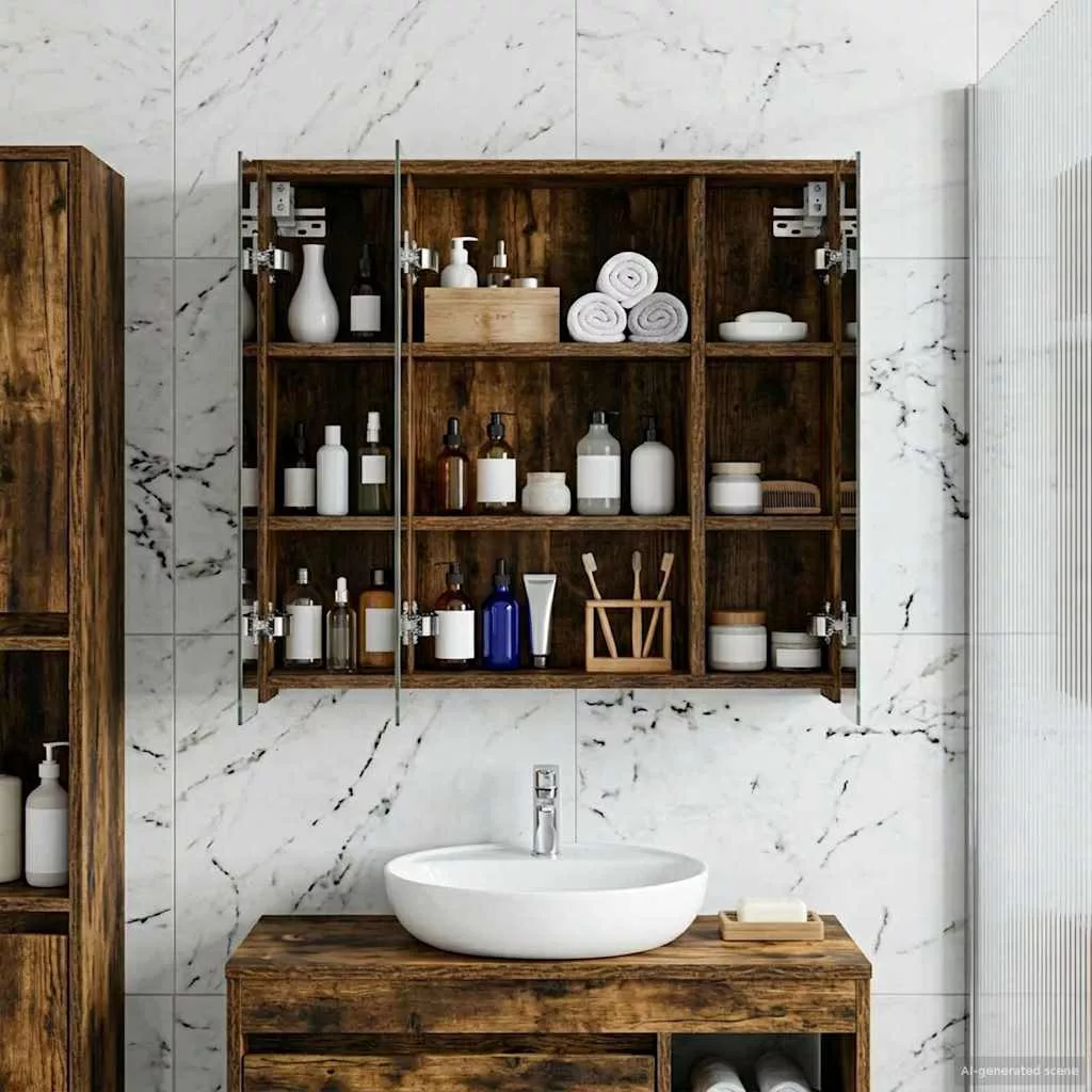Fürdőszobai tükörszekrény Füstölt tölgy 63,5 x 16 x 62,5 cm