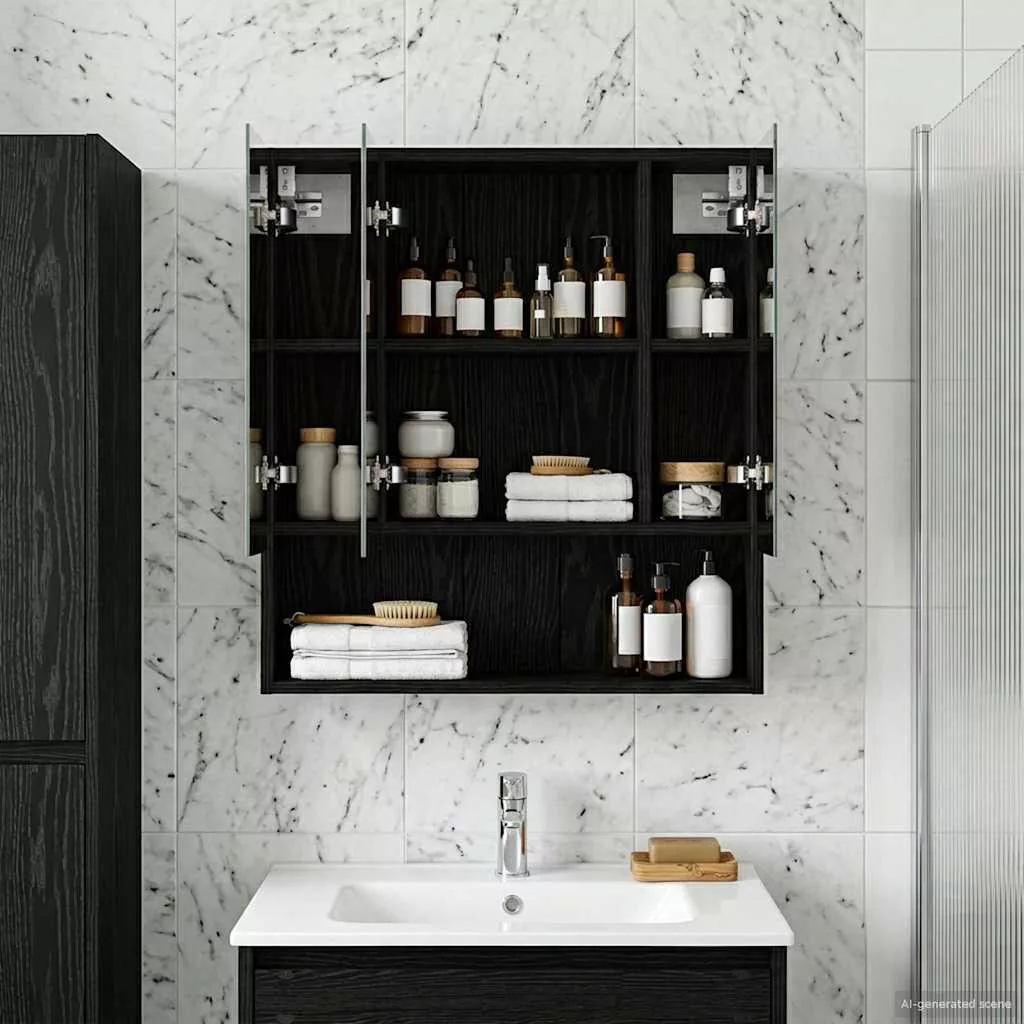 Fürdőszobai tükörszekrény Fekete tölgy 60 x 14.5 x 70 cm