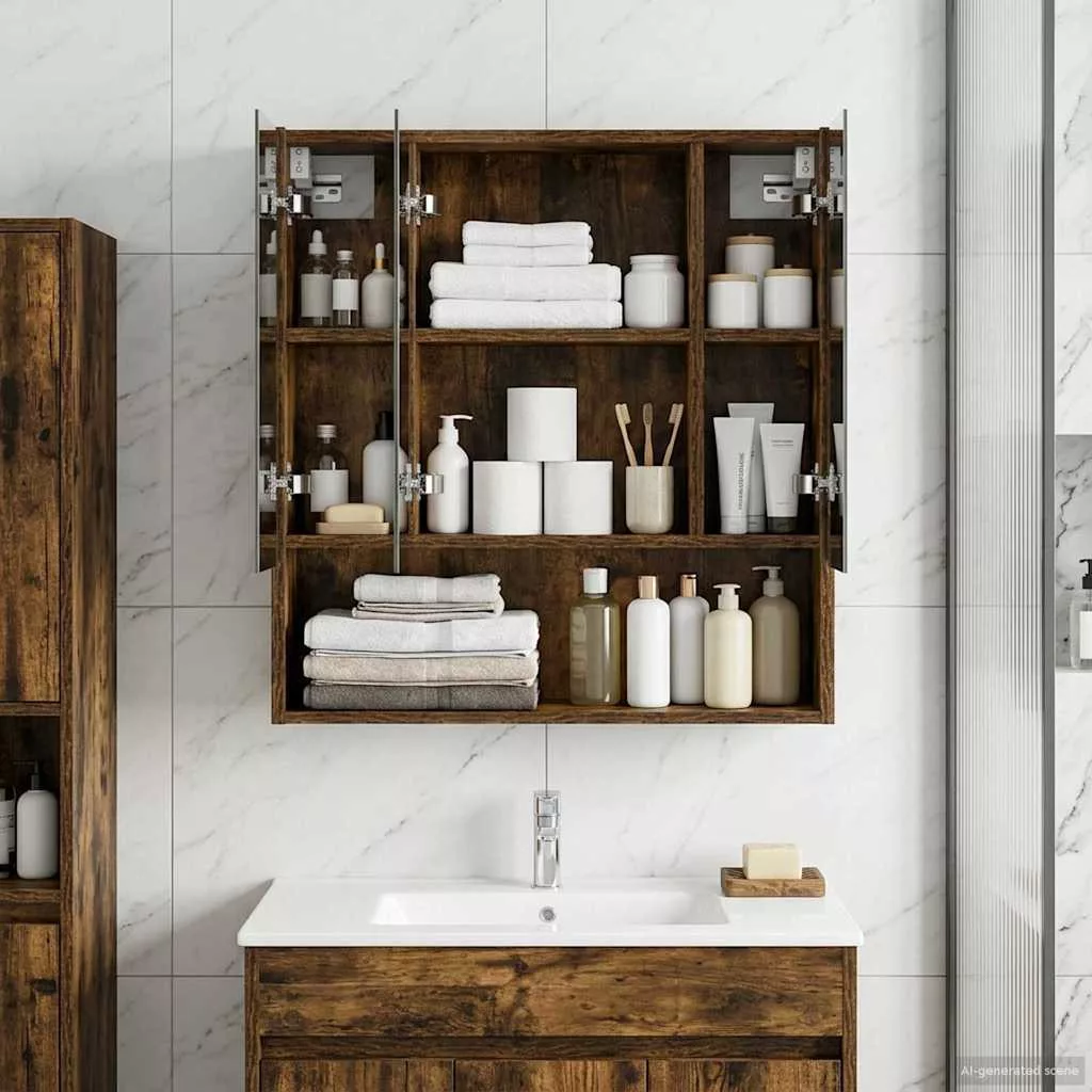 Fürdőszobai tükörszekrény Füstölt tölgy 60 x 14.5 x 70 cm