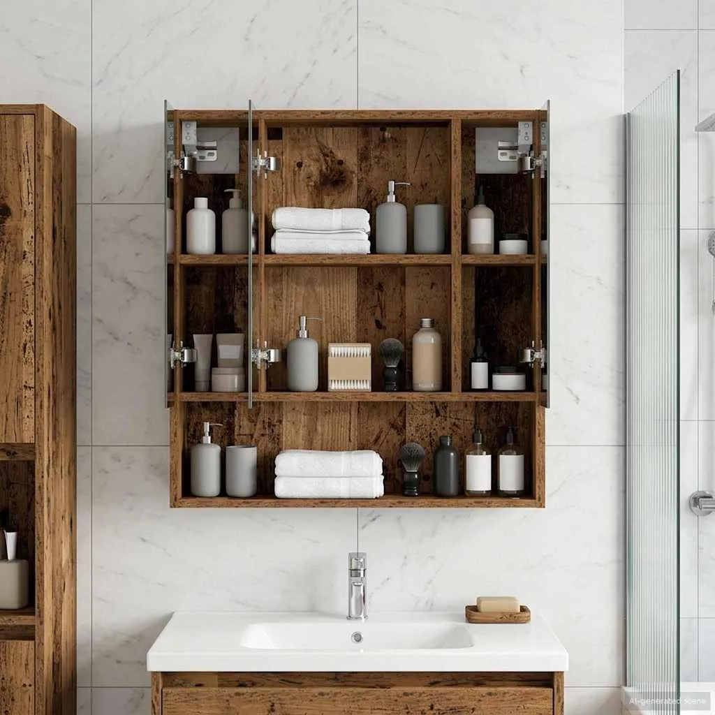 Fürdőszobai tükörszekrény Öreg fa 60 x 14.5 x 70 cm Faanyag