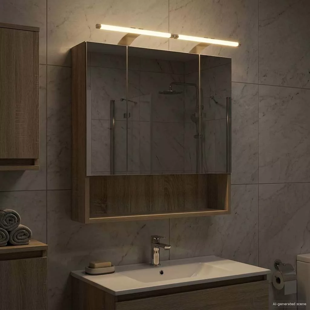 Ez a modern fürdőszoba tükörszekrény egy stílusos bútordarab, ami felpörgeti a fürdőhelyiséged. Letisztult, téglalap alakú megjelenésével és falra akasztható tervezésével maximálisan kihasználja a helyet. Az integrált tükör segíti a láthatóságot és a magánélet védelmét reggeli rutinokhoz egy igazán modern környezetben. Anyag: A szekrény műszaki fából készült, mert ez a fa híres a tartósságáról és a páratartalommal szembeni ellenállásáról, amitől a fürdőszobában is jól bírja az időt. Szilárd felépítése tartós teljesítményt biztosít, míg sima felülete a fürdőszoba dekorációját feldobja. Beépített összetevők: Két minőségi polca van, ami bőséges helyet nyújt a piperecikkeknek és szükséges dolgoknak rendezett tárolásához. Az integrált tükörajtók világosabbá teszik a teret, míg az állítható polcok különböző méretű termékeknek is helyet adnak. Modern funkcionalitás: A kétoldalas tükör sokoldalúságot és eleganciát biztosít, és a falra akasztható kialakítás rendben tartja a teret, ideálissá téve kortárs fürdőszobákhoz, ahol fontos a dizájn és a praktikum. Ajánlott használat: A szekrény stílusa miatt fürdőszobákhoz készült, de öltözőkben is jól használható. Bármilyen ápolási rutinhoz alkalmazkodik, segítve ezzel a könnyű hozzáférést és a praktikusságot. Ápolás & karbantartás: Csak egy puha ronggyal töröld le, hogy megőrizd a szép állapotát. Kerüld az abrazív tisztítószereket, hogy a felülete jó állapotban maradjon. Rendszeres takarítással a tükör tisztán tartása is könnyű, így mindig jól néz ki. Kérjük, vegye figyelembe, hogy csak tanúsított DC 5V bemenetet használjon. A magasabb feszültség túlmelegedést okozhat, és károsíthatja a készüléket, valamint túlhevülés és tűz kockázatát jelentheti. Ne csatlakoztassa ezt a terméket semmilyen más tápegységhez, mint amit a kézikönyvben, a névtáblán vagy a vidaXL kifejezetten ajánlott. Ezt a készüléket nem használhatják 14 évesnél fiatalabb gyermekek, valamint csökkent fizikai, érzékszervi vagy mentális képességekkel rendelkező személyek, vagy elektronikai eszközök használatában tapasztalatlan vagy tudás nélküli személyek. Az elektromosság veszélyes. A nem megfelelő telepítés, használat vagy módosítás (egyedi alkatrészek cseréje) a készülék károsodásához vezethet, áramütést és veszélyt okozva a felhasználónak. Ne működtesse ezt a terméket robbanásveszélyes atmoszférában, például gyúlékony folyadékok, gázok és por jelenlétében, vagy 50 Celsius foknál magasabb hőmérsékleten. Ne kapcsolja be a terméket, ha a csatlakozó kábel vagy tápegység láthatóan sérült. Ha a lámpa külső hajlékony kábele vagy vezetékje sérült, azt kizárólag a gyártó vagy annak szervizügynöke, illetve hasonló képesítéssel rendelkező személy cserélheti ki, hogy elkerülje a veszélyt. A telepítés és karbantartás alatt kapcsolja ki az áramot. Győződjön meg arról, hogy a fényforrások lehűltek. Ennek a lámpatestnek a fényforrása nem cserélhető; ha a fényforrás elérte élettartamának végét, az egész lámpát ki kell cserélni. Csak belső használatra, ne használja kültéren.