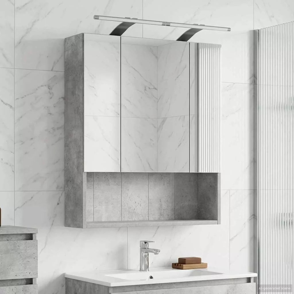Fürdőszobai tükörszekrény Beton Szürke 60 x 14.5 x 70 cm