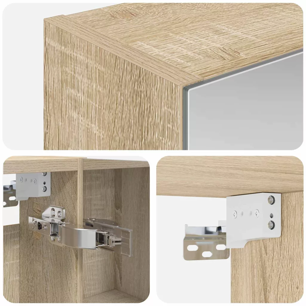 Ez a modern fürdőszoba tükörszekrény egy stílusos bútordarab, ami felpörgeti a fürdőhelyiséged. Letisztult, téglalap alakú megjelenésével és falra akasztható tervezésével maximálisan kihasználja a helyet. Az integrált tükör segíti a láthatóságot és a magánélet védelmét reggeli rutinokhoz egy igazán modern környezetben. Anyag: A szekrény műszaki fából készült, mert ez a fa híres a tartósságáról és a páratartalommal szembeni ellenállásáról, amitől a fürdőszobában is jól bírja az időt. Szilárd felépítése tartós teljesítményt biztosít, míg sima felülete a fürdőszoba dekorációját feldobja. Beépített összetevők: Két minőségi polca van, ami bőséges helyet nyújt a piperecikkeknek és szükséges dolgoknak rendezett tárolásához. Az integrált tükörajtók világosabbá teszik a teret, míg az állítható polcok különböző méretű termékeknek is helyet adnak. Modern funkcionalitás: A kétoldalas tükör sokoldalúságot és eleganciát biztosít, és a falra akasztható kialakítás rendben tartja a teret, ideálissá téve kortárs fürdőszobákhoz, ahol fontos a dizájn és a praktikum. Ajánlott használat: A szekrény stílusa miatt fürdőszobákhoz készült, de öltözőkben is jól használható. Bármilyen ápolási rutinhoz alkalmazkodik, segítve ezzel a könnyű hozzáférést és a praktikusságot. Ápolás & karbantartás: Csak egy puha ronggyal töröld le, hogy megőrizd a szép állapotát. Kerüld az abrazív tisztítószereket, hogy a felülete jó állapotban maradjon. Rendszeres takarítással a tükör tisztán tartása is könnyű, így mindig jól néz ki.