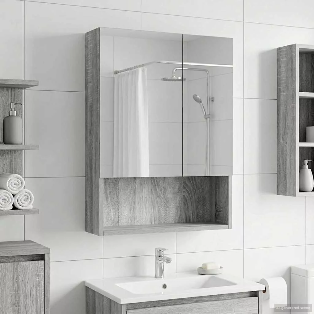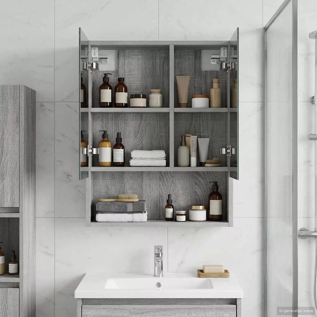 Fürdőszobai tükörszekrény Szürke Sonoma 50 x 14,5 x 70 cm