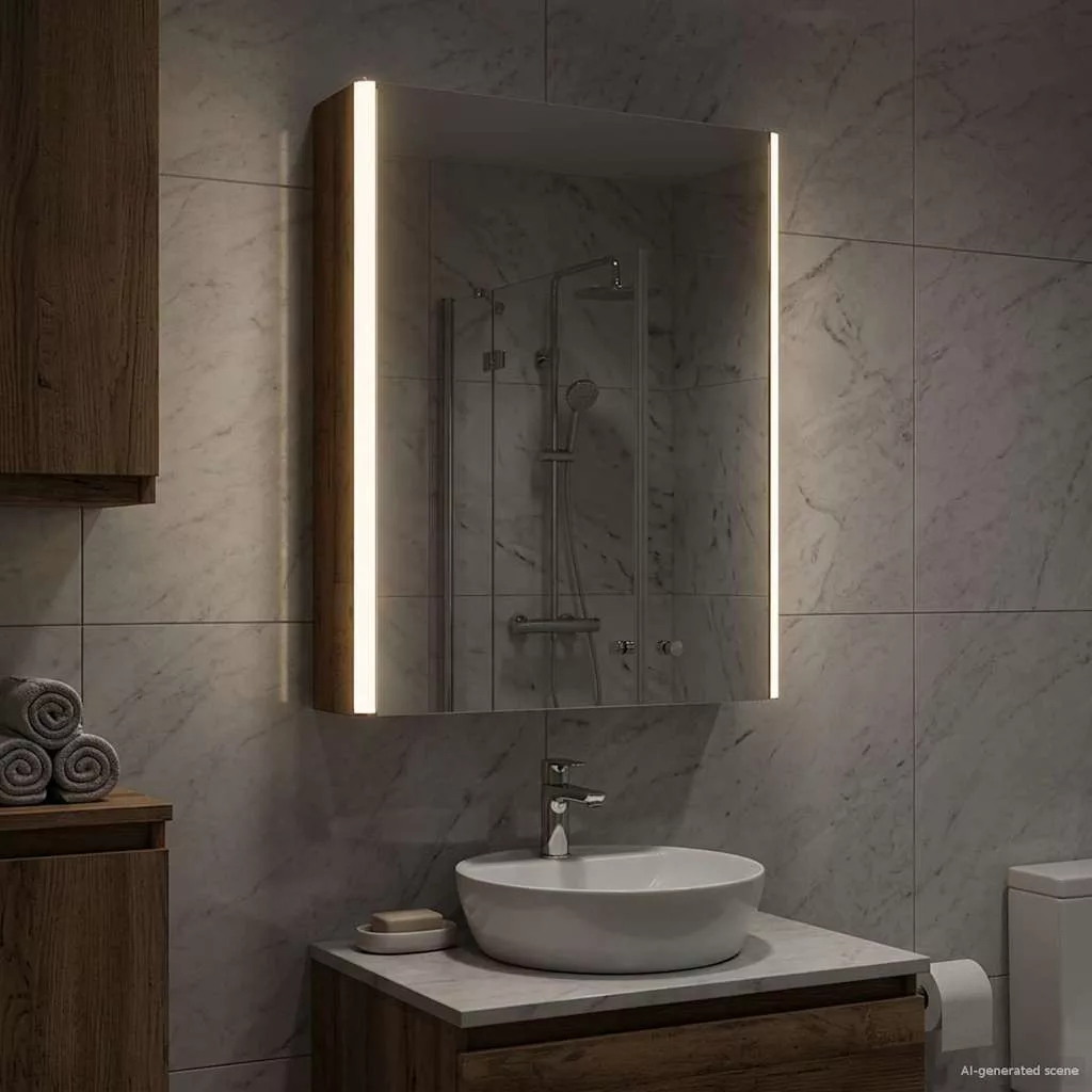 Ez a modern fürdőszoba tükörszekrény az elegáns dizájnt és praktikus funkcionalitást ötvözi, így elengedhetetlen darab minden modern fürdőszobában. Minimalista megjelenésével és letisztult vonalaival stílusos hatást kelt, miközben rengeteg helyet kínál a napi szükséges dolgoknak. Diszkrét, de hatékony világítással van ellátva, ami javítja a láthatóságot és a hangulatot, jól kombinálva a funkciót és a stílust. Mérnöki fa szerkezet A szekrény masszív mérnöki fából készült, hosszú élettartamot garantálva, miközben megtartja stílusos kinézetét. Ez az anyag ellenáll a deformálódásnak és a nedvességnek, így tökéletes a fürdőszobákhoz, növelve a tartósságot és az esztétikát. Multi-funkciós polcok Az mérnöki fa polcokkal ellátott szekrény sokoldalú tárolási megoldásokkal bír, amik különböző piperecikkek számára ideálisak. Az állítható rekeszek különféle méretű dolgok tárolását segítik elő, könnyítve a fürdőszoba rendben tartását. Kétirányú tükör design A szekrény kétirányú tükörrel van tervezve, ami egyedi kombinációját adja a fényvisszaverődésnek és átláthatóságnak. Ez a kettős funkció támogatja a hagyományos ápolási feladatokat, és növeli a biztonságot és a magánéletet. Állítható LED világítás Energiatakarékos LED fényforrásokkal szerelték, amik különböző fényerő szinten állíthatók, így testre szabott világítást kínálnak ápolási és egyéb feladatokhoz. A világítás nemcsak népszerűsíti a láthatóságot, hanem fokozza a hely dekorálását is. Biztonságos falra szerelés A szekrény úgy van tervezve, hogy falra szerelhető legyen, optimalizálva a fürdőszoba terét. Ez a rögzítési rendszer stabilitást és biztonságot garantál, a zsanéros ajtók megkönnyítik a tartalomhoz való hozzáférést. Kérjük, vegye figyelembe, hogy csak tanúsított DC 5V bemenetet használjon. A magasabb feszültség túlmelegedést okozhat, és károsíthatja a készüléket, valamint túlhevülés és tűz kockázatát jelentheti. Ne csatlakoztassa ezt a terméket semmilyen más tápegységhez, mint amit a kézikönyvben, a névtáblán vagy a vidaXL kifejezetten ajánlott. Ezt a készüléket nem használhatják 14 évesnél fiatalabb gyermekek, valamint csökkent fizikai, érzékszervi vagy mentális képességekkel rendelkező személyek, vagy elektronikai eszközök használatában tapasztalatlan vagy tudás nélküli személyek. Az elektromosság veszélyes. A nem megfelelő telepítés, használat vagy módosítás (egyedi alkatrészek cseréje) a készülék károsodásához vezethet, áramütést és veszélyt okozva a felhasználónak. Ne működtesse ezt a terméket robbanásveszélyes atmoszférában, például gyúlékony folyadékok, gázok és por jelenlétében, vagy 50 Celsius foknál magasabb hőmérsékleten. Ne kapcsolja be a terméket, ha a csatlakozó kábel vagy tápegység láthatóan sérült. Ha a lámpa külső hajlékony kábele vagy vezetékje sérült, azt kizárólag a gyártó vagy annak szervizügynöke, illetve hasonló képesítéssel rendelkező személy cserélheti ki, hogy elkerülje a veszélyt. A telepítés és karbantartás alatt kapcsolja ki az áramot. Győződjön meg arról, hogy a fényforrások lehűltek. Ennek a lámpatestnek a fényforrása nem cserélhető; ha a fényforrás elérte élettartamának végét, az egész lámpát ki kell cserélni. Csak belső használatra, ne használja kültéren.