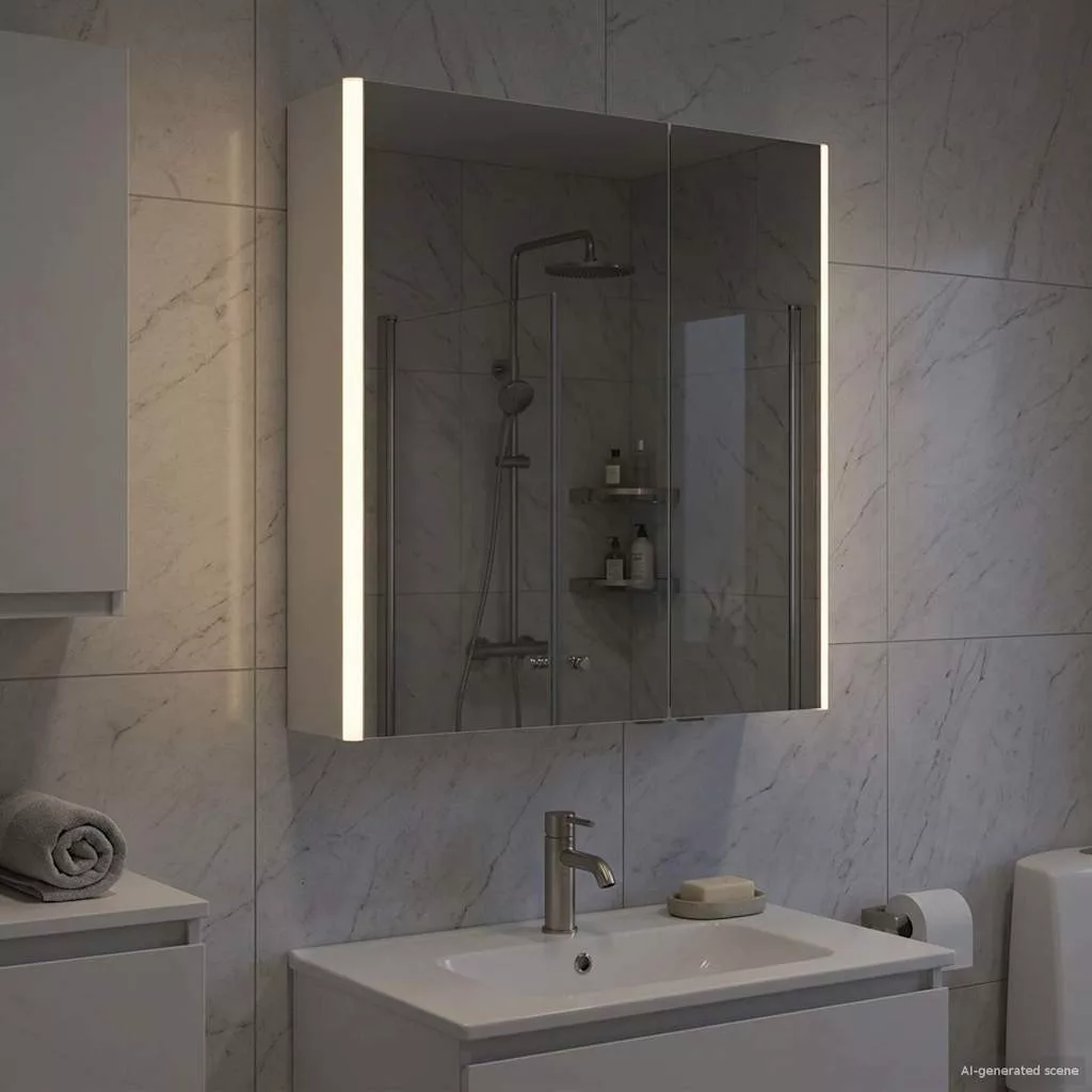 Ez a modern fürdőszoba tükörszekrény az elegáns dizájnt és praktikus funkcionalitást ötvözi, így elengedhetetlen darab minden modern fürdőszobában. Minimalista megjelenésével és letisztult vonalaival stílusos hatást kelt, miközben rengeteg helyet kínál a napi szükséges dolgoknak. Diszkrét, de hatékony világítással van ellátva, ami javítja a láthatóságot és a hangulatot, jól kombinálva a funkciót és a stílust. Mérnöki fa szerkezet A szekrény masszív mérnöki fából készült, hosszú élettartamot garantálva, miközben megtartja stílusos kinézetét. Ez az anyag ellenáll a deformálódásnak és a nedvességnek, így tökéletes a fürdőszobákhoz, növelve a tartósságot és az esztétikát. Multi-funkciós polcok Az mérnöki fa polcokkal ellátott szekrény sokoldalú tárolási megoldásokkal bír, amik különböző piperecikkek számára ideálisak. Az állítható rekeszek különféle méretű dolgok tárolását segítik elő, könnyítve a fürdőszoba rendben tartását. Kétirányú tükör design A szekrény kétirányú tükörrel van tervezve, ami egyedi kombinációját adja a fényvisszaverődésnek és átláthatóságnak. Ez a kettős funkció támogatja a hagyományos ápolási feladatokat, és növeli a biztonságot és a magánéletet. Állítható LED világítás Energiatakarékos LED fényforrásokkal szerelték, amik különböző fényerő szinten állíthatók, így testre szabott világítást kínálnak ápolási és egyéb feladatokhoz. A világítás nemcsak népszerűsíti a láthatóságot, hanem fokozza a hely dekorálását is. Biztonságos falra szerelés A szekrény úgy van tervezve, hogy falra szerelhető legyen, optimalizálva a fürdőszoba terét. Ez a rögzítési rendszer stabilitást és biztonságot garantál, a zsanéros ajtók megkönnyítik a tartalomhoz való hozzáférést. Kérjük, vegye figyelembe, hogy csak tanúsított DC 5V bemenetet használjon. A magasabb feszültség túlmelegedést okozhat, és károsíthatja a készüléket, valamint túlhevülés és tűz kockázatát jelentheti. Ne csatlakoztassa ezt a terméket semmilyen más tápegységhez, mint amit a kézikönyvben, a névtáblán vagy a vidaXL kifejezetten ajánlott. Ezt a készüléket nem használhatják 14 évesnél fiatalabb gyermekek, valamint csökkent fizikai, érzékszervi vagy mentális képességekkel rendelkező személyek, vagy elektronikai eszközök használatában tapasztalatlan vagy tudás nélküli személyek. Az elektromosság veszélyes. A nem megfelelő telepítés, használat vagy módosítás (egyedi alkatrészek cseréje) a készülék károsodásához vezethet, áramütést és veszélyt okozva a felhasználónak. Ne működtesse ezt a terméket robbanásveszélyes atmoszférában, például gyúlékony folyadékok, gázok és por jelenlétében, vagy 50 Celsius foknál magasabb hőmérsékleten. Ne kapcsolja be a terméket, ha a csatlakozó kábel vagy tápegység láthatóan sérült. Ha a lámpa külső hajlékony kábele vagy vezetékje sérült, azt kizárólag a gyártó vagy annak szervizügynöke, illetve hasonló képesítéssel rendelkező személy cserélheti ki, hogy elkerülje a veszélyt. A telepítés és karbantartás alatt kapcsolja ki az áramot. Győződjön meg arról, hogy a fényforrások lehűltek. Ennek a lámpatestnek a fényforrása nem cserélhető; ha a fényforrás elérte élettartamának végét, az egész lámpát ki kell cserélni. Csak belső használatra, ne használja kültéren.