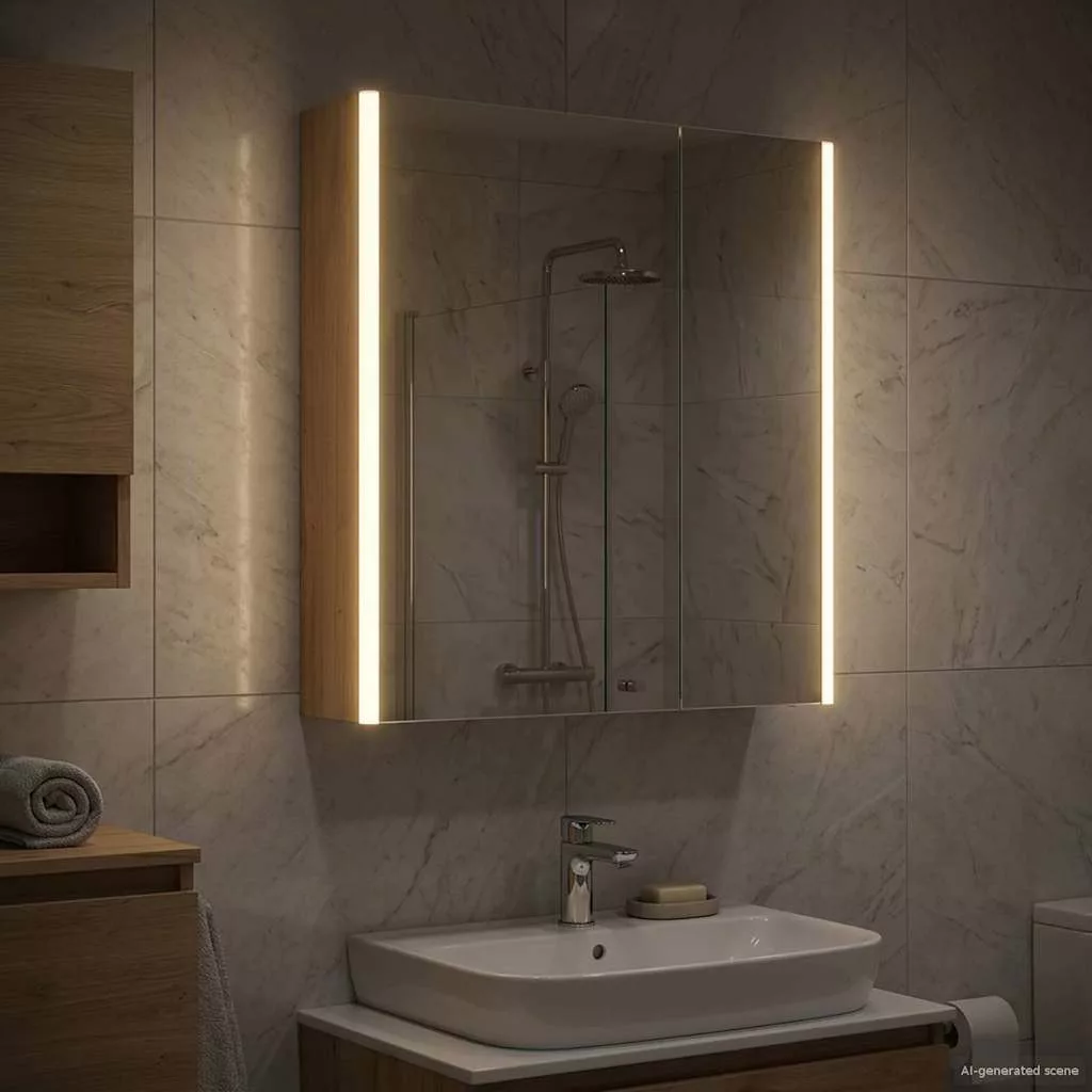 Ez a modern fürdőszoba tükörszekrény az elegáns dizájnt és praktikus funkcionalitást ötvözi, így elengedhetetlen darab minden modern fürdőszobában. Minimalista megjelenésével és letisztult vonalaival stílusos hatást kelt, miközben rengeteg helyet kínál a napi szükséges dolgoknak. Diszkrét, de hatékony világítással van ellátva, ami javítja a láthatóságot és a hangulatot, jól kombinálva a funkciót és a stílust. Mérnöki fa szerkezet A szekrény masszív mérnöki fából készült, hosszú élettartamot garantálva, miközben megtartja stílusos kinézetét. Ez az anyag ellenáll a deformálódásnak és a nedvességnek, így tökéletes a fürdőszobákhoz, növelve a tartósságot és az esztétikát. Multi-funkciós polcok Az mérnöki fa polcokkal ellátott szekrény sokoldalú tárolási megoldásokkal bír, amik különböző piperecikkek számára ideálisak. Az állítható rekeszek különféle méretű dolgok tárolását segítik elő, könnyítve a fürdőszoba rendben tartását. Kétirányú tükör design A szekrény kétirányú tükörrel van tervezve, ami egyedi kombinációját adja a fényvisszaverődésnek és átláthatóságnak. Ez a kettős funkció támogatja a hagyományos ápolási feladatokat, és növeli a biztonságot és a magánéletet. Állítható LED világítás Energiatakarékos LED fényforrásokkal szerelték, amik különböző fényerő szinten állíthatók, így testre szabott világítást kínálnak ápolási és egyéb feladatokhoz. A világítás nemcsak népszerűsíti a láthatóságot, hanem fokozza a hely dekorálását is. Biztonságos falra szerelés A szekrény úgy van tervezve, hogy falra szerelhető legyen, optimalizálva a fürdőszoba terét. Ez a rögzítési rendszer stabilitást és biztonságot garantál, a zsanéros ajtók megkönnyítik a tartalomhoz való hozzáférést. Kérjük, vegye figyelembe, hogy csak tanúsított DC 5V bemenetet használjon. A magasabb feszültség túlmelegedést okozhat, és károsíthatja a készüléket, valamint túlhevülés és tűz kockázatát jelentheti. Ne csatlakoztassa ezt a terméket semmilyen más tápegységhez, mint amit a kézikönyvben, a névtáblán vagy a vidaXL kifejezetten ajánlott. Ezt a készüléket nem használhatják 14 évesnél fiatalabb gyermekek, valamint csökkent fizikai, érzékszervi vagy mentális képességekkel rendelkező személyek, vagy elektronikai eszközök használatában tapasztalatlan vagy tudás nélküli személyek. Az elektromosság veszélyes. A nem megfelelő telepítés, használat vagy módosítás (egyedi alkatrészek cseréje) a készülék károsodásához vezethet, áramütést és veszélyt okozva a felhasználónak. Ne működtesse ezt a terméket robbanásveszélyes atmoszférában, például gyúlékony folyadékok, gázok és por jelenlétében, vagy 50 Celsius foknál magasabb hőmérsékleten. Ne kapcsolja be a terméket, ha a csatlakozó kábel vagy tápegység láthatóan sérült. Ha a lámpa külső hajlékony kábele vagy vezetékje sérült, azt kizárólag a gyártó vagy annak szervizügynöke, illetve hasonló képesítéssel rendelkező személy cserélheti ki, hogy elkerülje a veszélyt. A telepítés és karbantartás alatt kapcsolja ki az áramot. Győződjön meg arról, hogy a fényforrások lehűltek. Ennek a lámpatestnek a fényforrása nem cserélhető; ha a fényforrás elérte élettartamának végét, az egész lámpát ki kell cserélni. Csak belső használatra, ne használja kültéren.