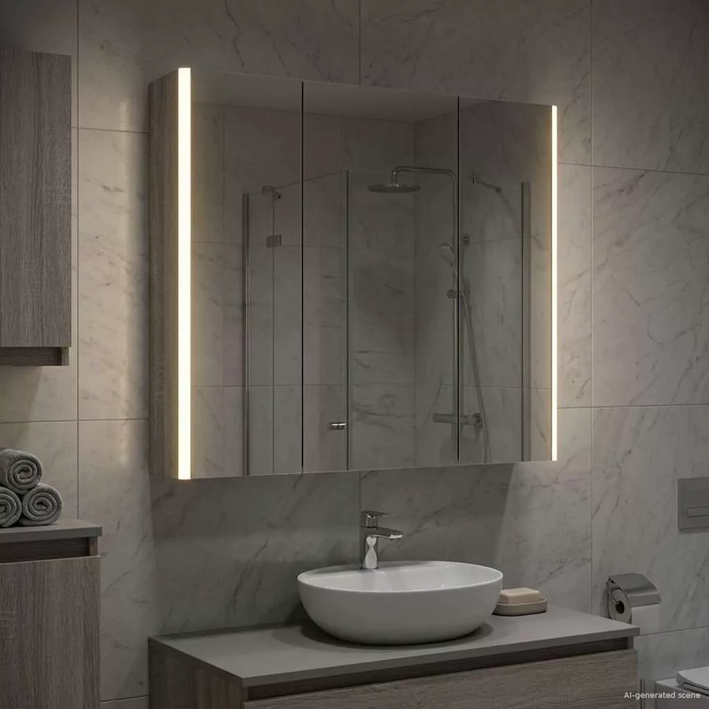 Ez a modern fürdőszoba tükörszekrény az elegáns dizájnt és praktikus funkcionalitást ötvözi, így elengedhetetlen darab minden modern fürdőszobában. Minimalista megjelenésével és letisztult vonalaival stílusos hatást kelt, miközben rengeteg helyet kínál a napi szükséges dolgoknak. Diszkrét, de hatékony világítással van ellátva, ami javítja a láthatóságot és a hangulatot, jól kombinálva a funkciót és a stílust. Mérnöki fa szerkezet A szekrény masszív mérnöki fából készült, hosszú élettartamot garantálva, miközben megtartja stílusos kinézetét. Ez az anyag ellenáll a deformálódásnak és a nedvességnek, így tökéletes a fürdőszobákhoz, növelve a tartósságot és az esztétikát. Multi-funkciós polcok Az mérnöki fa polcokkal ellátott szekrény sokoldalú tárolási megoldásokkal bír, amik különböző piperecikkek számára ideálisak. Az állítható rekeszek különféle méretű dolgok tárolását segítik elő, könnyítve a fürdőszoba rendben tartását. Kétirányú tükör design A szekrény kétirányú tükörrel van tervezve, ami egyedi kombinációját adja a fényvisszaverődésnek és átláthatóságnak. Ez a kettős funkció támogatja a hagyományos ápolási feladatokat, és növeli a biztonságot és a magánéletet. Állítható LED világítás Energiatakarékos LED fényforrásokkal szerelték, amik különböző fényerő szinten állíthatók, így testre szabott világítást kínálnak ápolási és egyéb feladatokhoz. A világítás nemcsak népszerűsíti a láthatóságot, hanem fokozza a hely dekorálását is. Biztonságos falra szerelés A szekrény úgy van tervezve, hogy falra szerelhető legyen, optimalizálva a fürdőszoba terét. Ez a rögzítési rendszer stabilitást és biztonságot garantál, a zsanéros ajtók megkönnyítik a tartalomhoz való hozzáférést. Kérjük, vegye figyelembe, hogy csak tanúsított DC 5V bemenetet használjon. A magasabb feszültség túlmelegedést okozhat, és károsíthatja a készüléket, valamint túlhevülés és tűz kockázatát jelentheti. Ne csatlakoztassa ezt a terméket semmilyen más tápegységhez, mint amit a kézikönyvben, a névtáblán vagy a vidaXL kifejezetten ajánlott. Ezt a készüléket nem használhatják 14 évesnél fiatalabb gyermekek, valamint csökkent fizikai, érzékszervi vagy mentális képességekkel rendelkező személyek, vagy elektronikai eszközök használatában tapasztalatlan vagy tudás nélküli személyek. Az elektromosság veszélyes. A nem megfelelő telepítés, használat vagy módosítás (egyedi alkatrészek cseréje) a készülék károsodásához vezethet, áramütést és veszélyt okozva a felhasználónak. Ne működtesse ezt a terméket robbanásveszélyes atmoszférában, például gyúlékony folyadékok, gázok és por jelenlétében, vagy 50 Celsius foknál magasabb hőmérsékleten. Ne kapcsolja be a terméket, ha a csatlakozó kábel vagy tápegység láthatóan sérült. Ha a lámpa külső hajlékony kábele vagy vezetékje sérült, azt kizárólag a gyártó vagy annak szervizügynöke, illetve hasonló képesítéssel rendelkező személy cserélheti ki, hogy elkerülje a veszélyt. A telepítés és karbantartás alatt kapcsolja ki az áramot. Győződjön meg arról, hogy a fényforrások lehűltek. Ennek a lámpatestnek a fényforrása nem cserélhető; ha a fényforrás elérte élettartamának végét, az egész lámpát ki kell cserélni. Csak belső használatra, ne használja kültéren.
