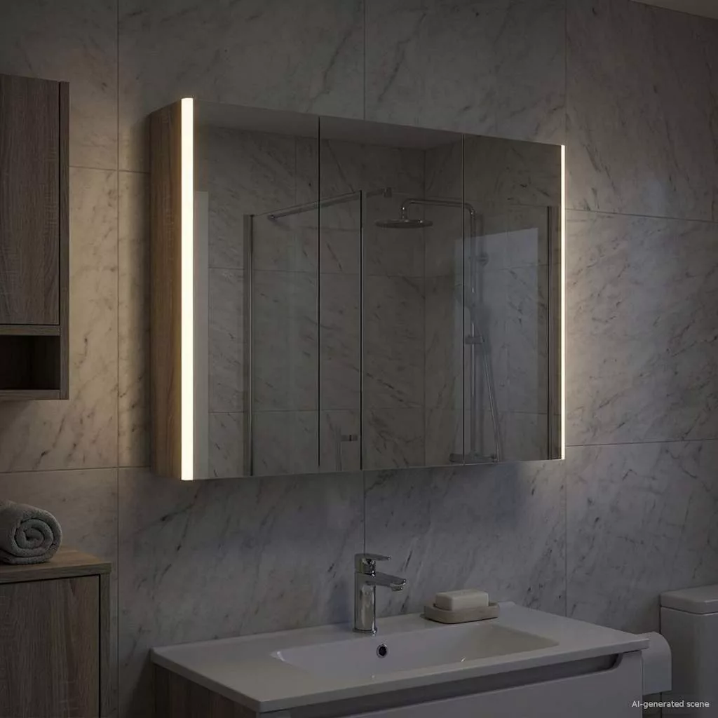 Ez a modern fürdőszoba tükörszekrény az elegáns dizájnt és praktikus funkcionalitást ötvözi, így elengedhetetlen darab minden modern fürdőszobában. Minimalista megjelenésével és letisztult vonalaival stílusos hatást kelt, miközben rengeteg helyet kínál a napi szükséges dolgoknak. Diszkrét, de hatékony világítással van ellátva, ami javítja a láthatóságot és a hangulatot, jól kombinálva a funkciót és a stílust. Mérnöki fa szerkezet A szekrény masszív mérnöki fából készült, hosszú élettartamot garantálva, miközben megtartja stílusos kinézetét. Ez az anyag ellenáll a deformálódásnak és a nedvességnek, így tökéletes a fürdőszobákhoz, növelve a tartósságot és az esztétikát. Multi-funkciós polcok Az mérnöki fa polcokkal ellátott szekrény sokoldalú tárolási megoldásokkal bír, amik különböző piperecikkek számára ideálisak. Az állítható rekeszek különféle méretű dolgok tárolását segítik elő, könnyítve a fürdőszoba rendben tartását. Kétirányú tükör design A szekrény kétirányú tükörrel van tervezve, ami egyedi kombinációját adja a fényvisszaverődésnek és átláthatóságnak. Ez a kettős funkció támogatja a hagyományos ápolási feladatokat, és növeli a biztonságot és a magánéletet. Állítható LED világítás Energiatakarékos LED fényforrásokkal szerelték, amik különböző fényerő szinten állíthatók, így testre szabott világítást kínálnak ápolási és egyéb feladatokhoz. A világítás nemcsak népszerűsíti a láthatóságot, hanem fokozza a hely dekorálását is. Biztonságos falra szerelés A szekrény úgy van tervezve, hogy falra szerelhető legyen, optimalizálva a fürdőszoba terét. Ez a rögzítési rendszer stabilitást és biztonságot garantál, a zsanéros ajtók megkönnyítik a tartalomhoz való hozzáférést. Kérjük, vegye figyelembe, hogy csak tanúsított DC 5V bemenetet használjon. A magasabb feszültség túlmelegedést okozhat, és károsíthatja a készüléket, valamint túlhevülés és tűz kockázatát jelentheti. Ne csatlakoztassa ezt a terméket semmilyen más tápegységhez, mint amit a kézikönyvben, a névtáblán vagy a vidaXL kifejezetten ajánlott. Ezt a készüléket nem használhatják 14 évesnél fiatalabb gyermekek, valamint csökkent fizikai, érzékszervi vagy mentális képességekkel rendelkező személyek, vagy elektronikai eszközök használatában tapasztalatlan vagy tudás nélküli személyek. Az elektromosság veszélyes. A nem megfelelő telepítés, használat vagy módosítás (egyedi alkatrészek cseréje) a készülék károsodásához vezethet, áramütést és veszélyt okozva a felhasználónak. Ne működtesse ezt a terméket robbanásveszélyes atmoszférában, például gyúlékony folyadékok, gázok és por jelenlétében, vagy 50 Celsius foknál magasabb hőmérsékleten. Ne kapcsolja be a terméket, ha a csatlakozó kábel vagy tápegység láthatóan sérült. Ha a lámpa külső hajlékony kábele vagy vezetékje sérült, azt kizárólag a gyártó vagy annak szervizügynöke, illetve hasonló képesítéssel rendelkező személy cserélheti ki, hogy elkerülje a veszélyt. A telepítés és karbantartás alatt kapcsolja ki az áramot. Győződjön meg arról, hogy a fényforrások lehűltek. Ennek a lámpatestnek a fényforrása nem cserélhető; ha a fényforrás elérte élettartamának végét, az egész lámpát ki kell cserélni. Csak belső használatra, ne használja kültéren.