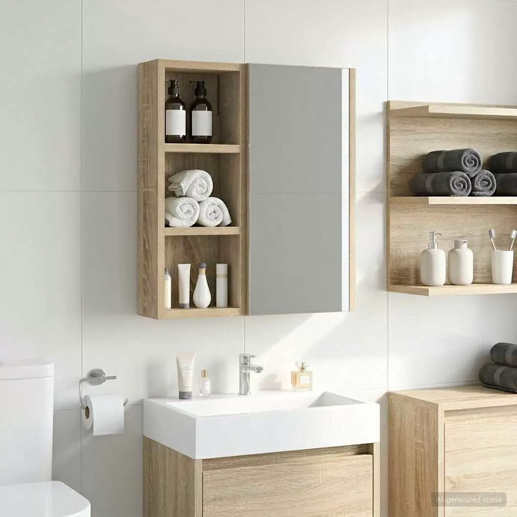 Fürdőszobai faliszekrény polcokkal Sonoma tölgy 20 x 10 x 50 cm