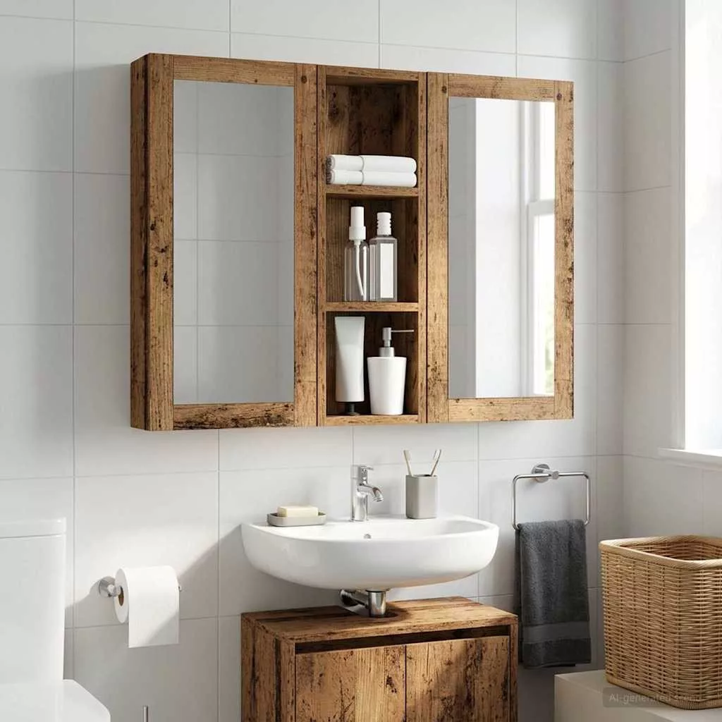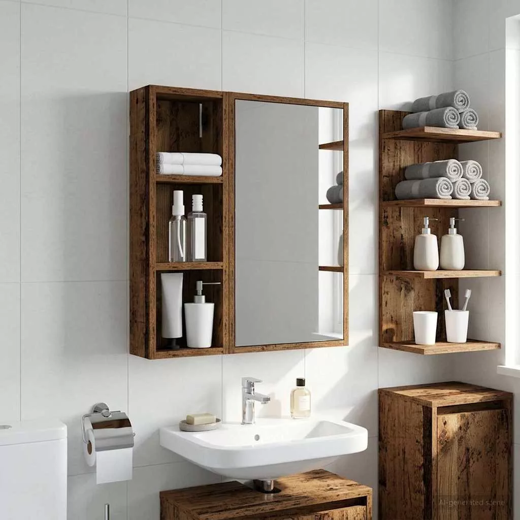 Fürdőszobai faliszekrény Öreg fa 20 x 10 x 60,5 cm Mérnöki fa