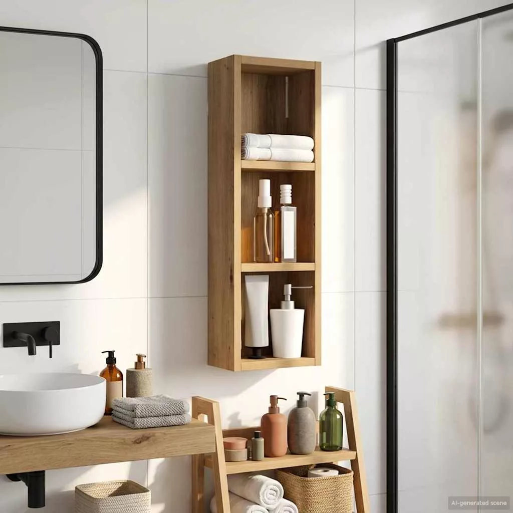 Ez a modern fürdőszoba szekrény letisztult és minimalista megoldást kínál a fürdőszobai tároláshoz, tökéletes azoknak, akik szeretnék kihasználni a teret, miközben megőrzik a kortárs dizájnt. A falra rögzíthető, így kifejezetten ajánlott kisebb fürdőszobákhoz, ahol korlátozott a padlófelület, ideálisan illeszkedik a modern városi életterekhez. A szekrény egyszerű vonalai és minimalista stílusa lehetővé teszi, hogy ne csak tárolóként, de esztétikai elemként is megállja a helyét a fürdőszobában. Anyagok: Az épített fa anyag robusztus és tartós, bírja a fürdőszoba párás környezetét. Ez az anyagválasztás biztosítja, hogy a szekrény erős maradjon, miközben modern megjelenést kölcsönöz, amit minden dekorációhoz tud párosítani. Beépített elemek: A táblás polcok praktikus megoldásokat kínálnak, amikkel könnyedén elhelyezheted a fürdőszobai cuccokat. A polcok segítségével a piperecikkek rendezettek és könnyen elérhetőek lesznek. Jellemzők / Funkció / Dizájn: A falra rögzíthető szekrény helyet takarít meg, miközben jelentős tárolókapacitást kínál. A dizájn lehetővé teszi a felhasználók számára, hogy helyet szabadítsanak fel a padlón, ezzel letisztult és áramvonalas hatást biztosítva a fürdőszobában. Ajánlott felhasználás: Ideális azoknak a fürdőszobáknak, ahol extra tárolóra van szükség. Ez a szekrény modern háztartások számára készült, ahol a tér optimalizálása fontos. Piperecikkeket, törölközőket és más napi alapvető dolgokat tárolhatsz, remekül alkalmazkodik a különböző igényekhez, biztosítva a rendezett és könnyen hozzáférhető tárolást a kisebb helyeken. Ápolás és karbantartás: A szekrény megóvása érdekében töröld le a felületeit nedves ruhával, és kerüld az erős tisztítószereket. Ez garantálja az épített fa tartósságát, és megőrzi a modern kinézetét az idő múlásával.