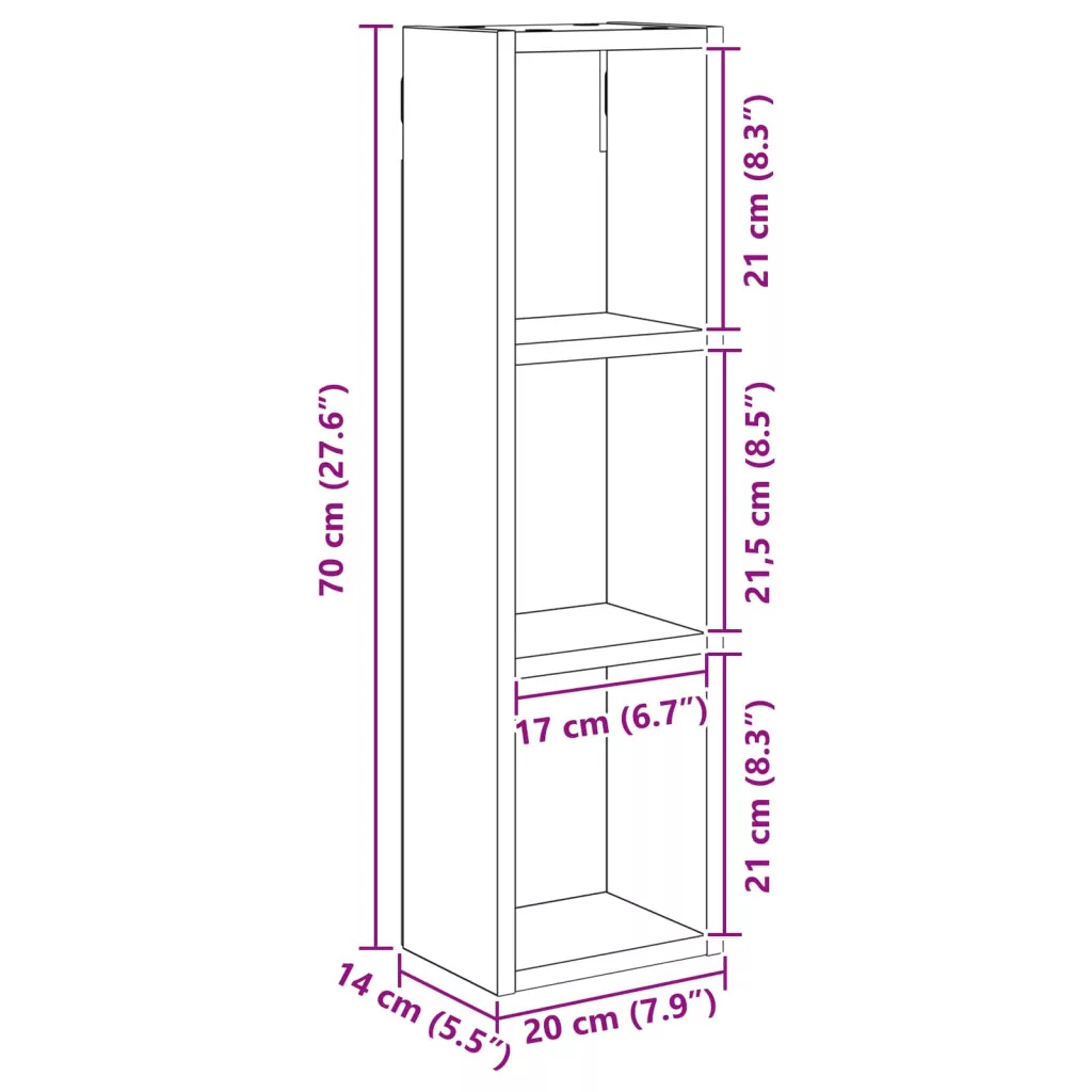 Fürdőszobai faliszekrény Szürke Sonoma 20 x 14 x 70 cm
