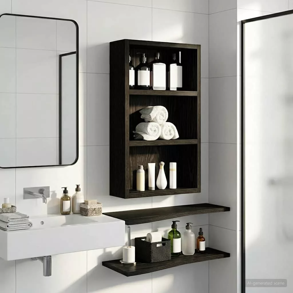 Fürdőszobai faliszekrény polcokkal Fekete Tölgy 30 x 10 x 50 cm