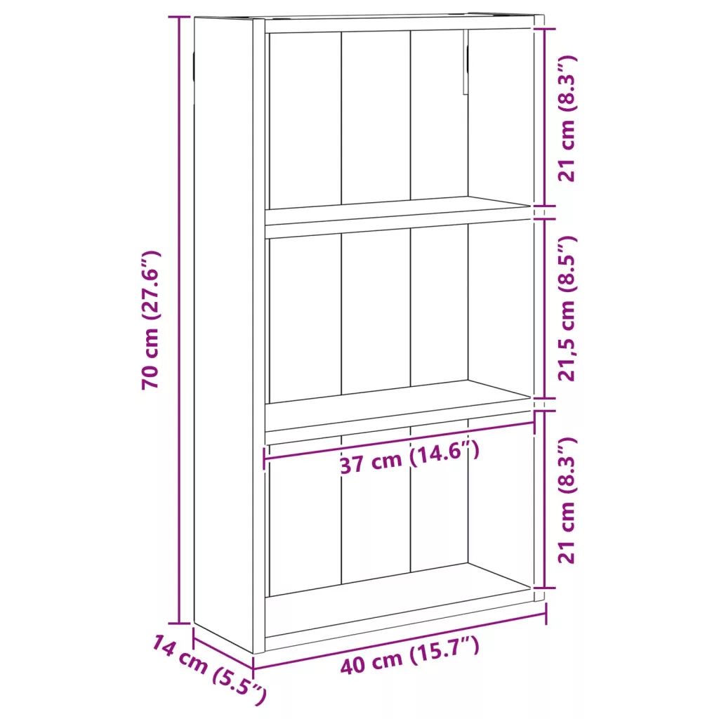 Fürdőszobai faliszekrény Füstölt Tölgy 40 x 14 x 70 cm