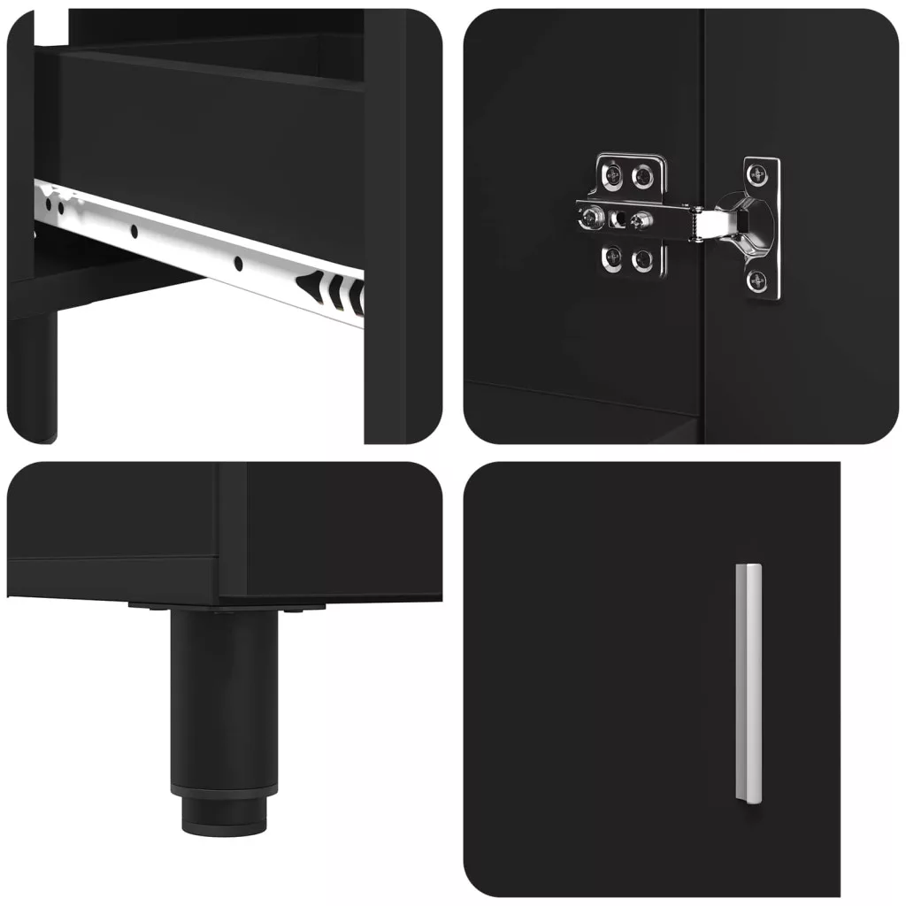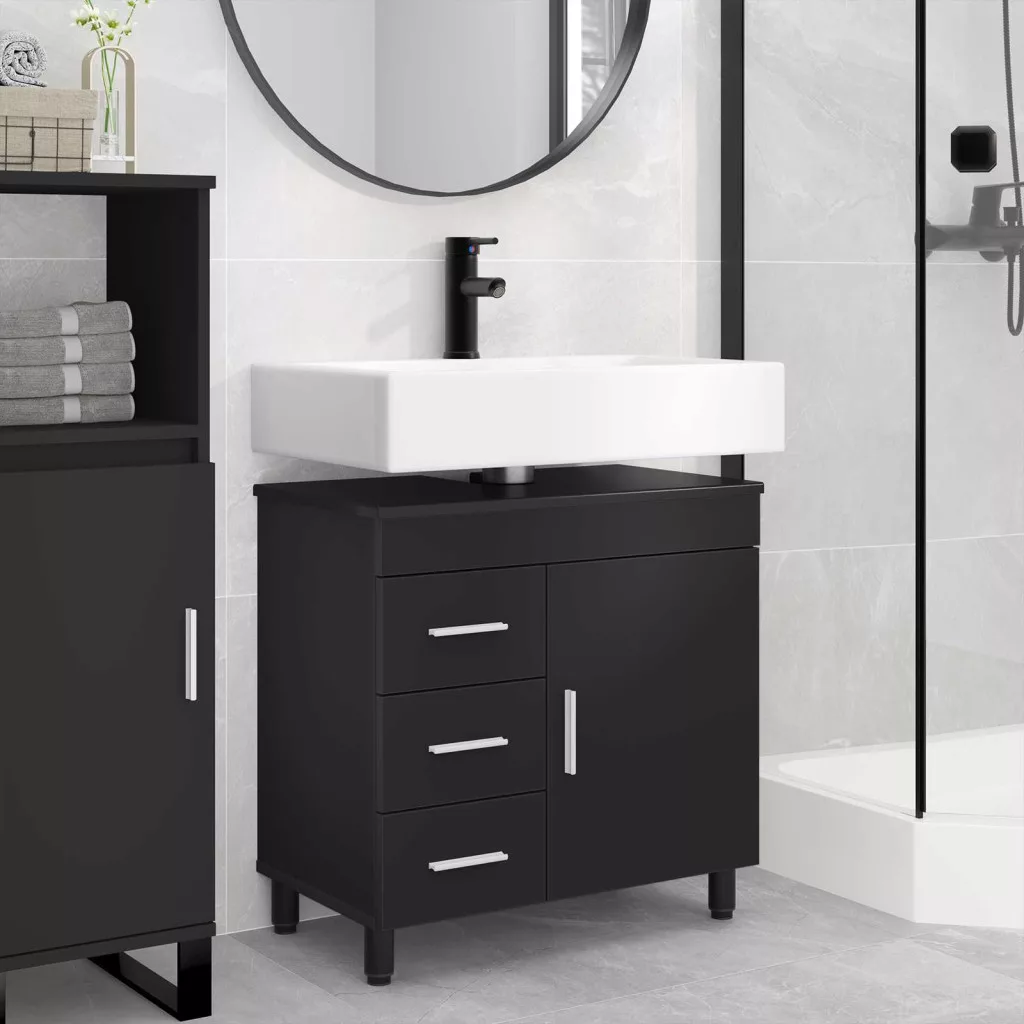 Ez a Modern fürdőszoba mosdó alatti szekrény a stílus és a funkcionalitás tökéletes keveréke. Modern megjelenésével hatalmas tárolóhelyet biztosít, és pont odaillik a mosdód alá, így plusz értéket ad a fürdőszobádhoz. Tiszta vonalai és szép külseje jól passzolnak bármilyen dekorhoz, ötvözve az esztétikát a hasznos funkcióval. Tökéletes választás azoknak, akik nemcsak gyönyörű, hanem praktikus megoldásokat is keresnek a fürdőszobájukba. Anyagok: A fürdőszoba szekrény erős fa alapanyaga a robusztusság mellett stílust is hoz. Az erősített fa garantálja a hosszú élettartamot, így mindennapi használat mellett is megőrzi modern külsejét. Ez a választás időtálló és elegáns felületet biztosít a fürdőszobádban. Komponensek: Stabilitásért állítható fém lábakkal van ellátva, emellett 90°-os lengőpántos ajtókkal és kényelmes rúd fogantyúkkal rendelkezik. Ezek a forgácslapból készült elemek lehetővé teszik a könnyű hozzáférést és a sokoldalú használatot. A praktikus kialakítás miatt az ajtók és fogantyúk felhasználóbarát interakciót biztosítanak, megkönnyítve a tárolt dolgok rendezését és visszavételét. Funkció / Design: A praktikus funkciók közé tartozik a bőséges tárolótér kialakítása, ami segít a fürdőszoba legfontosabb holmijainak kezelésében. A szekrénybe integrált gyors lefolyó funkció növeli a használat egyszerűségét, így könnyebben elkerülhető a káosz. Ez a funkció hangsúlyozza a szekrény szerepét a fürdőszoba hatékony tárolási megoldásaiban. Ajánlott használat: Ideális beltéri használatra a fürdőszobában, rugalmasságot biztosít piperecikkek és készletek tárolására. Tökéletes a modern fürdőszoba stílusához, eleganciájával különböző stílusokhoz illeszkedik, kiemelkedő választás a tárolás érdekében. Ápolás és karbantartás: A szekrény tisztántartása egyszerű - csupán nedves ronggyal kell letörölni, hogy hosszú ideig megőrizze vonzó külsejét. Ez a könnyű karbantartás biztosítja, hogy a szekrény funkcionális elem maradjon, miközben folyamatosan megőrzi eredeti eleganciáját.