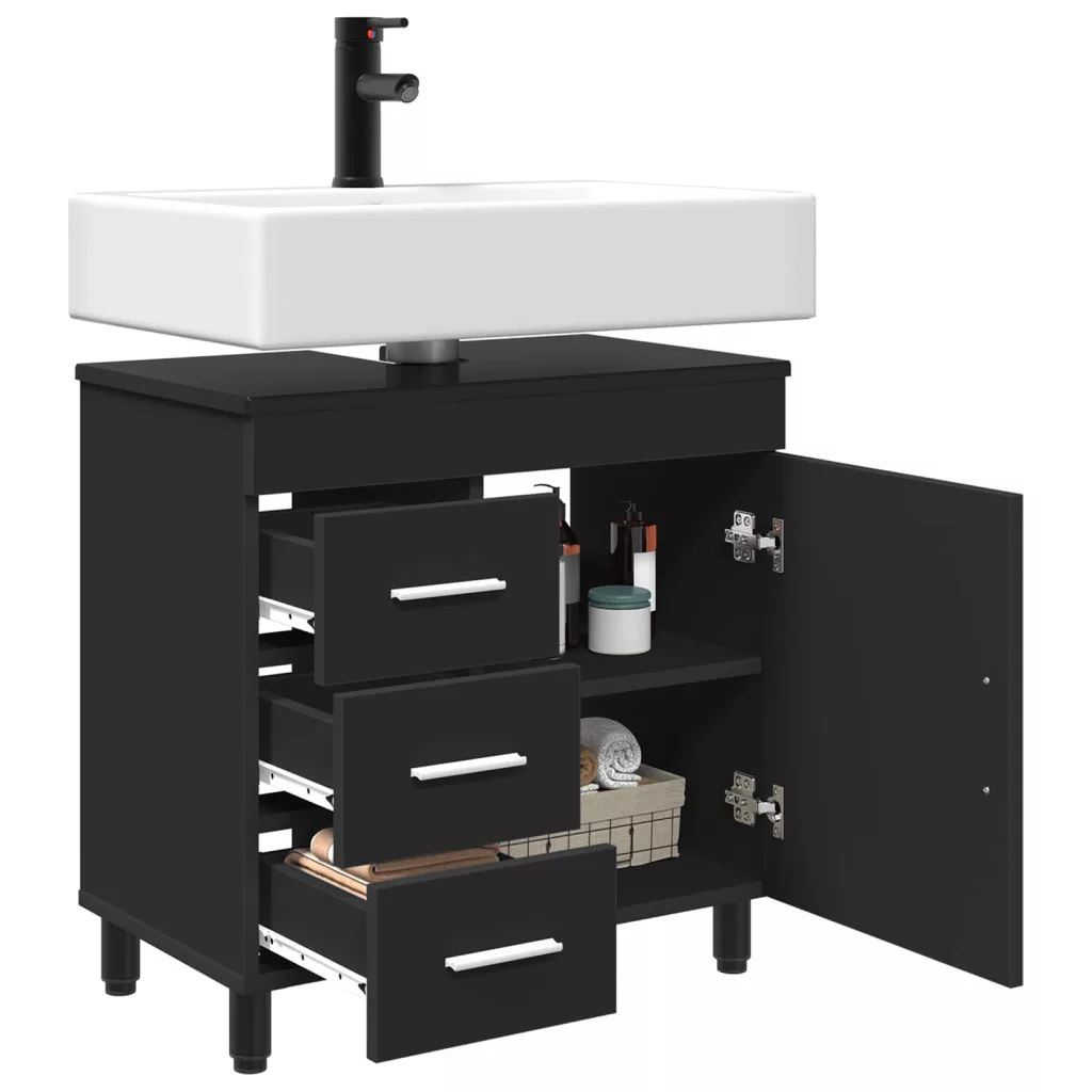Fürdőszobai pult mosdóval Fekete 60 x 35 x 60 cm Mérnöki fa