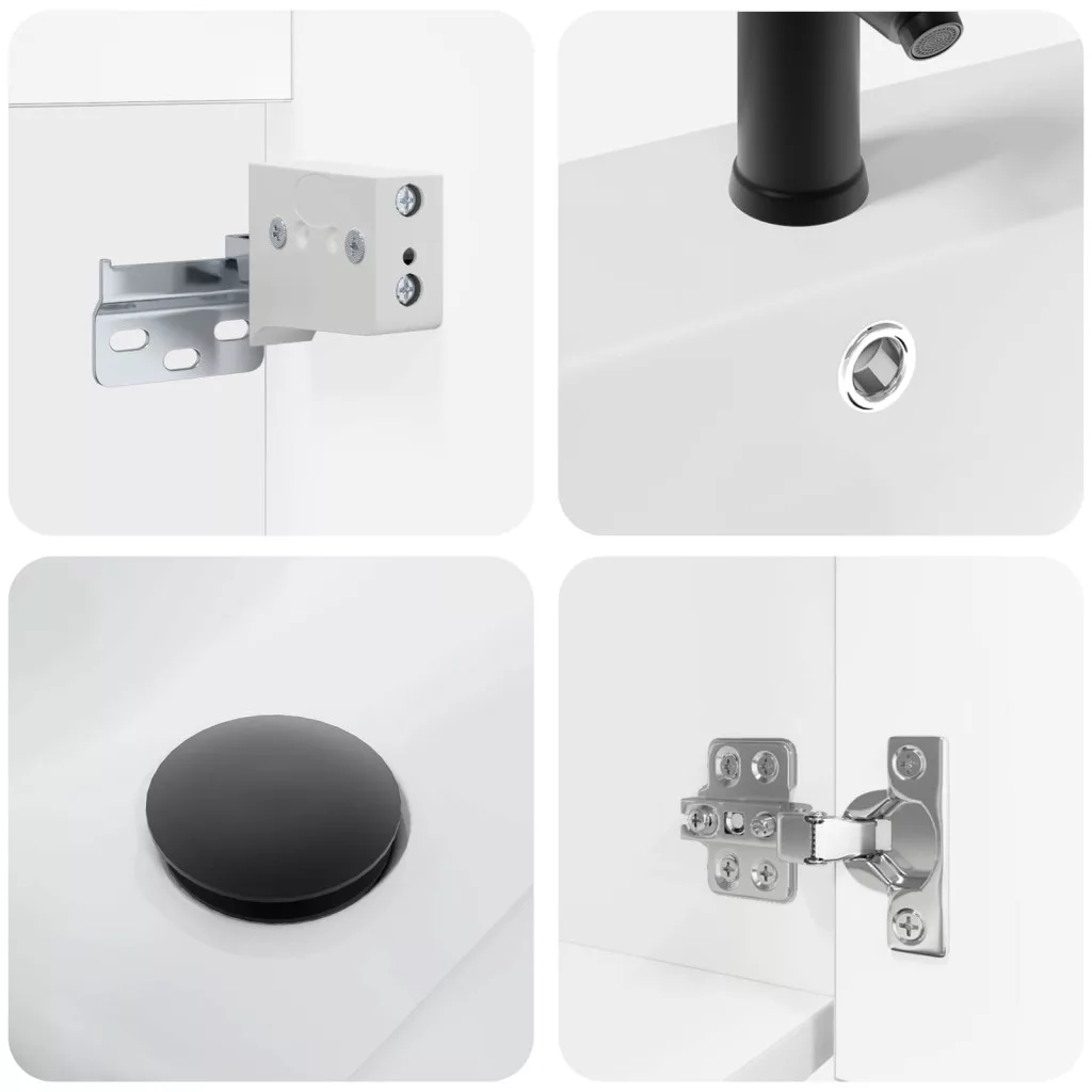 Ez a modern fürdőszobai mosdószekrény beépített mosdóval nemcsak szuper dizájnos, hanem praktikus tárolást is kínál, így feldobja a fürdőszoba stílusát és használhatóságát. Azoknak való, akik szeretik az egyszerűséget és a tiszta vonalakat, ez a bútordarab a legjobb választás bármely modern fürdőszobához. Compact méretének köszönhetően a legapróbb helyiségekbe is könnyen elfér, miközben biztosítja a rendezettséget a napi rutinhoz. Magas minőségű anyagok: Az engineered wood tartós és vízálló, így nem fog csalódást okozni a fürdőszobában. Simább felülete nemcsak elegáns, de erős támaszt is ad a különböző fürdőszobai kellékeknek. Integrált elemek: Beépített mosdóval és csappal készült, ami összhangban van a praktikus és stílusos dizájnnal. A túlfolyó funkció megkönnyíti a használatot, mivel megőrzi a tisztaságot és megelőzi a rendetlenséget. Helytakarékos falra szerelhető dizájn: A falra rögzítve segít kihasználni a padló helyet, így ideális a kisebb fürdőszobákhoz. A modern minimalista dizájn segít, hogy a hely ne legyen túl zsúfolt. Bőséges tároló kapacitás: Különféle piperefelszerelések és tisztítószerek tárolására alkalmas, így rendezetten tarthatod a fürdőszobát. Kiváló választás azoknak, akik sok tárolóra vágynak kicsi helyeken. Egyszerű karbantartási útmutatók: Könnyen tisztítható, elég egy nedves rongyot használni, hogy megmaradjon a szép megjelenése. Rendszeres tisztítással garantált a hosszú élettartam és a fresh kinézet.