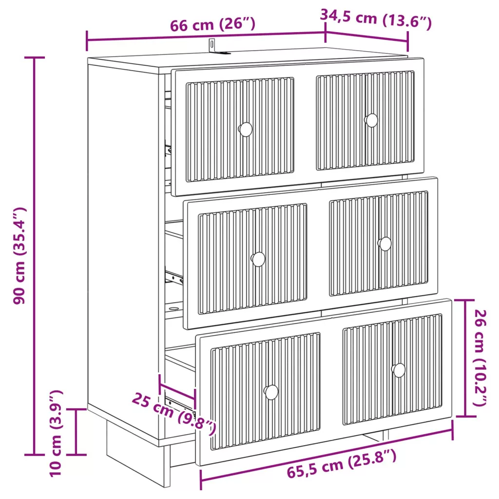 Fiókos szekrény Kézműves Tölgy 66 x 34,5 x 90 cm Szerelt Fa