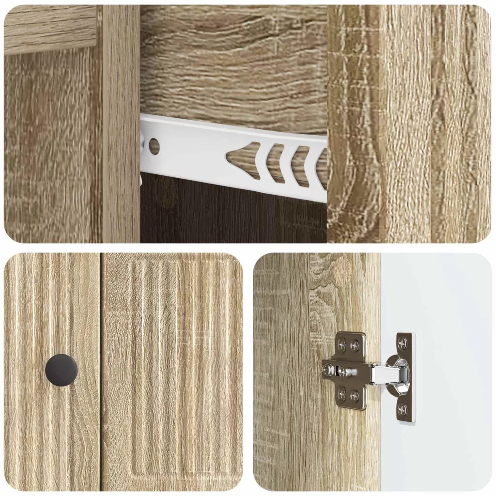 A Modern Fiókos szekrény nem csak egy egyszerű tároló, hanem egy igazi stílusos darab is, ami jól illik a nappalidba vagy az étkeződbe. A téglalap alakja harmonikusan illeszkedik a falakhoz, és feldobja a helyiséget. Mivel sokféle dekorációhoz passzol, remek megoldás étkezési kellékek vagy éppen dísztárgyak tárolására. Tedd az otthonodba, hogy praktikus és szép legyen! Mérnöki fa anyag: Ez a szekrény megbízható és tartós, az anyag pedig tökéletesen bírja a mindennapi használatot. Kifejezetten az erőssége miatt választották, így hosszú időn át hű társad lesz. Fém gombok: A fiókok és az ajtók sima fém gombokkal vannak ellátva, ami megkönnyíti a használatukat. Stílusos, mégis praktikus, így jól illik a vintage megjelenéshez. 90°-os ajtók: Ezzel a kialakítással a belső tárolókhoz könnyen hozzáférsz. Retro hangulatot áraszthat, de nagyon praktikus is. Használd, ha étkezési vagy díszítő kellékeket szeretnél tárolni. Deszkás polcok: A belső térben deszkás polcokat találsz, amik segítenek az otthoni dolgok rendezésében. Legyen szó tányérokról vagy díszekről, mindenre jut hely. Karbantartás és telepítés: Könnyen tisztán tartható egy nedves ruhával. A falra rögzítő eszközök biztosítják a biztonságot. Két ember szükséges a szereléshez, de csak alapvető szerszámokra lesz szükséged a stabil felállításhoz.