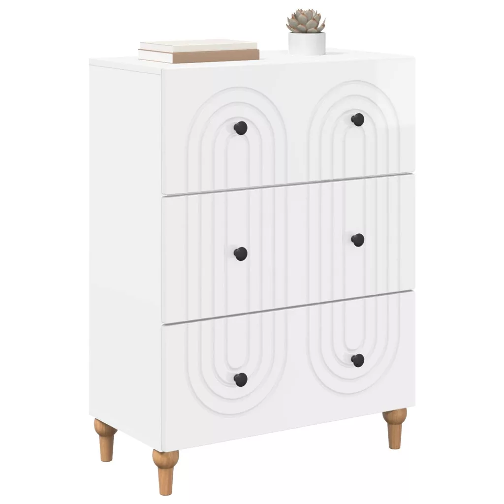 Fiókos szekrény Magasfényű Fehér 66 x 34,5 x 90 cm Szerelt Fa