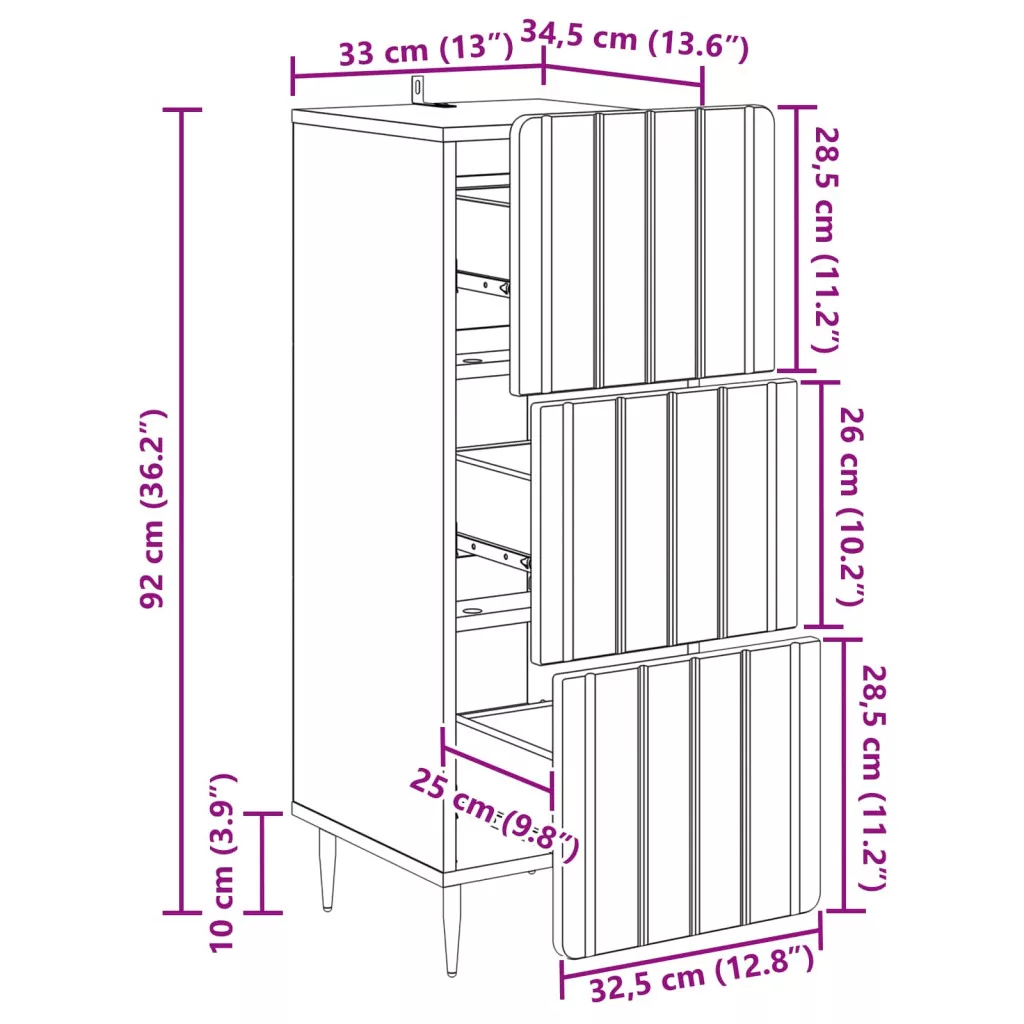 Fiókos szekrény Füstös Tölgy 33 x 34,5 x 92 cm Szerelt Fa