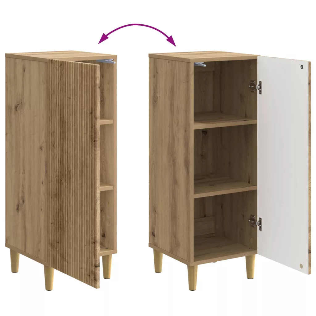 Ez a menő Modern Tálalószekrény megörökíti a régi kor vintage varázsát, miközben modern funkciókat kínál. Stílusos tárolómegoldásnak tervezték, téglalap alakú, aminek méretei 33 cm (hossz) x 34,5 cm (szélesség) x 90 cm (magasság). A tálalószekrény sima felületei és klasszikus részletei időtlen darabbá teszik, ami bármely nappalit gazdagít. Keskeny lábain állva ez a tálalószekrény összehozza a formát és a funkciót, elegáns helyet biztosít a fontos dolgok tárolásához. Mérnöki Fa Építés A tálalószekrény mérnöki fából készült, így tartós és vonzó a modern belső térhez. A választott anyag biztosítja a hosszú élettartamot, a felület megkönnyíti a tisztítást. Funkcionális Polcok Deszkapolcokkal igényes helykihasználást kínál különböző tárgyak számára. Ezek a polcok sokféle holmit elnyelnek, a dekorációs elemeket és a mindennapi szükségleteket is. Keskeny Tapered Lába A mérnöki fából készült keskeny lábak nemcsak vintage megjelenést kölcsönöznek, de stabilitást is biztosítanak, hogy jól bírják a napi igénybevételt. 90°-os Lengő Ajtók Minden ajtó 90°-os lengőzárral működik, ami könnyű hozzáférést biztosít a belső rekeszekhez, megkönnyítve a tárolt tárgyak átláthatóságát. Beltéri Használatra Ez a tálalószekrény kifejezetten beltéri használatra készült, így tökéletes kiegészítője a nappali tereknek, ahol az elegancia és a praktikum elsődleges. A gondosan tervezett struktúra jól illeszkedik a különböző belső elrendezésekhez, fokozva a funkcionalitást és a vonzerőt.