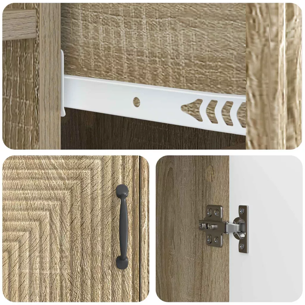 Ez a modern tálalószekrény a vintage báját vegyíti a jelenkori praktikummal, és ideális választás étkezőkbe vagy nappalikba, ahol stílusra és tárolásra van szükség. Sokoldalú dizájnja remekül beleillik a vintage környezetekbe, miközben sok tárolóhelyet kínál a nyüzsgő mindennapokhoz. Sokoldalú anyagok A műszaki fából készült szekrény stabil szerkezetet és elegáns megjelenést biztosít, így remekül mutat a nappaliban. Tartós felépítése miatt hosszú élettartamra számíthat vele. Átfogó tárolási lehetőségek Fali polcokkal és fiókokkal felszerelve, bőséges helyet biztosít a tárolásra. A lengőajtók segítségével könnyen elrejtheti a rendetlenséget, miközben kéznél vannak a szükséges dolgok. Gondos tervezés A modern fém lábak és bárfogantyúk esztétikailag vonzóvá teszik, és könnyen illenek bármilyen otthon stílusához. A szekrény stabil, a fogantyúk pedig segítenek a könnyű hozzáférésben. Praktikus használat Ez a tálalószekrény ideálisan alkalmazható nappaliban, étkezőben vagy egyéb belső terekben, és jól passzol a klasszikus és kortárs stílusokhoz egyaránt. Rugalmassága miatt könnyen beilleszthető bármilyen otthonba. Könnyű karbantartás Csak egy nedves ruhával kell áttörölni, így szép állapotban tartható, minimális karbantartást igényel. Ez a könnyű ápolás biztosítja a hosszú élettartamot és a funkcionalitást.