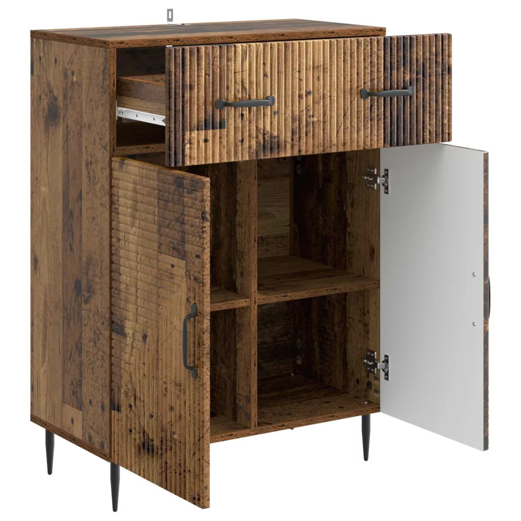 Ez a Modern Tálaló ötvözi a vintage esztétikát a modern dizájnnal, így elegáns megoldást kínál az otthoni rendezettséghez. Téglalap alakja jól illik bármilyen környezetbe, stílusos bájt kölcsönözve az étkezőknek vagy nappaliknak. Praktikus és stílusos, ez a tálaló kielégíti a különféle tárolási igényeket, tökéletes választás azoknak, akik szeretik a funkcionalitást és a dizájnt. Mérnöki Fa Kivitelezés A tálaló teste teljesen mérnöki fából készült, ami tartós és környezetbarát. Az anyag sima, stílusos felületet biztosít, ami tökéletes a rendezett megjelenéshez, így bármely időszakban csak rá kell nézni. Polcok & Fém Lábak Robusztus polcokkal és elegáns keskenyedő fém lábakkal rendelkezik; a fekete szín stabilitást és stílust ad a konstrukciónak, így nagy súlyt is képes elbírni anélkül, hogy a dizájn rovására menne. 90°-os Lengőajtó & Fiók A lengőajtók jobban hozzáférhetővé teszik a tárolót, míg a jól megtervezett fiók extra zárt tárolást biztosít. Tökéletes az apró dolgok rendezésére és a rendezettség fenntartására. Sokoldalú Használat & Bőséges Tárolás Ez a tálaló elengedhetetlen, ha bőséges tárolást keresel. Ideális az étkészletek és asztalterítők rendezésére, jól illeszkedik bármilyen térbe, így praktikus és szép megoldás étkezőbe vagy nappaliba. Egyszerű Ápolás & Összeszerelés A felület karbantartása pofon egyszerű, csak egy nedves ruhára lesz szükséged. Az összeszereléshez két ember elég csavarhúzóval, így nem okoz gondot a biztonságos és rendezett megjelenés elérése otthonodban.