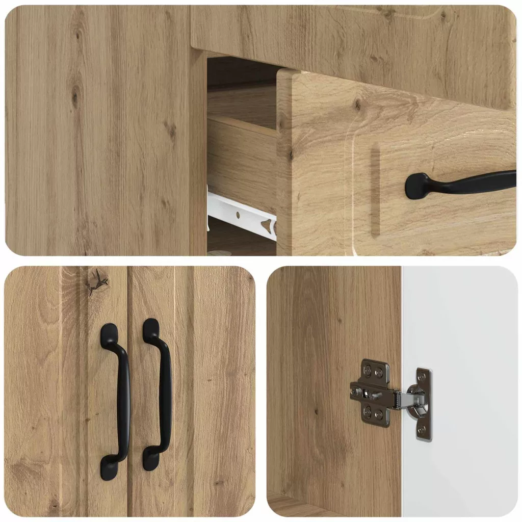 Ez az oldalpolc a stílus és a funkció tökéletes keveréke! Téglalap alakú, jól illik a modern nappalikhoz és az étkezőkbe. Ezzel a menő tárolási megoldással rendezetté teheted a dolgokat, miközben esztétikafokozó hatása van, mindenkit lenyűgöz. Mérnöki fa szerkezet: Szuper tartós, megbízható tárolást kínál, ideális a háztartásban. Az anyag garantálja a hosszú élettartamot, és még a karbantartása is egyszerű! 90°-os lengőpántos ajtók: Az ajtók gondosan meg munkáltak, simán nyílnak, a dizájn pedig elegáns marad. Bőséges tárolókapacitás: Rengeteg helye van, hogy rendezetten tudd tartani a főzőedényeket, étkészleteket vagy virágcserepeket. Funkcionális elemek: Az íjhúzós fém fogantyúk kényelmesek, könnyen elérheted a szükséges dolgaidat. Könnyű karbantartás: Csak töröld le nedves ruhával, így mindig tiszta! Ez a karbantartási rutin segít megőrizni lakótered esztétikáját.