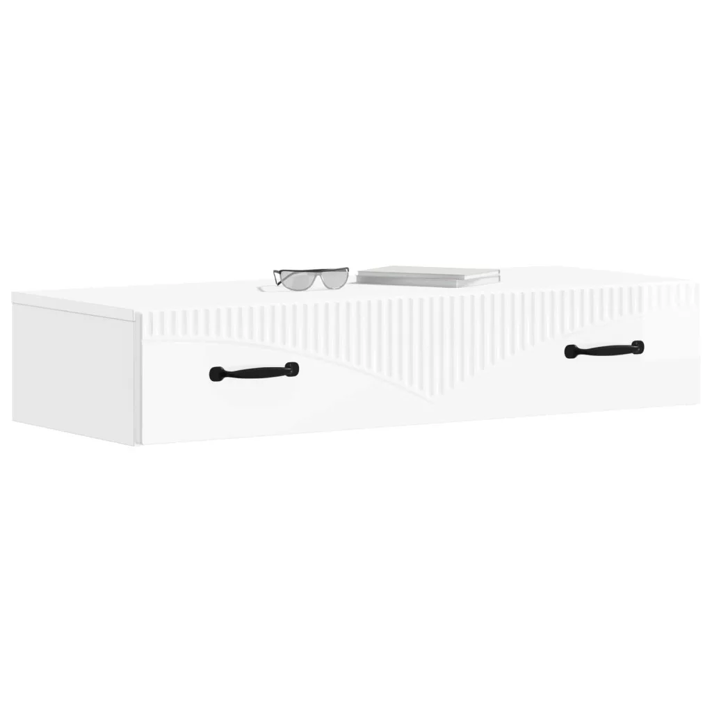 Fali oldaltábla Magasfényű Fehér 87,5 x 34,5 x 17 cm Szerelt Fa
