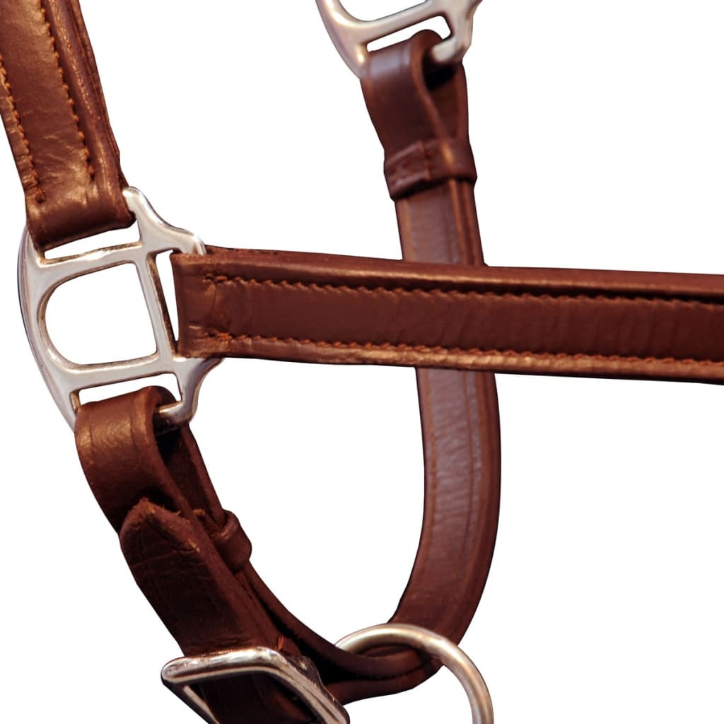Ez a kiváló minőségű bivaly bőből készült kötőfék könnyen állítható és tervezése elegáns. E kötőfék nyaki és orrszíj része extra réteggel bélelt, mely kényelmesebbé teszi. A fejrészen található csat és a nyakrésznél található kapocs állítható. A nyaki pántnak köszönhetően ez a kötőfék nem csak remek kinézetű hanem extra biztonságot is nyújt.