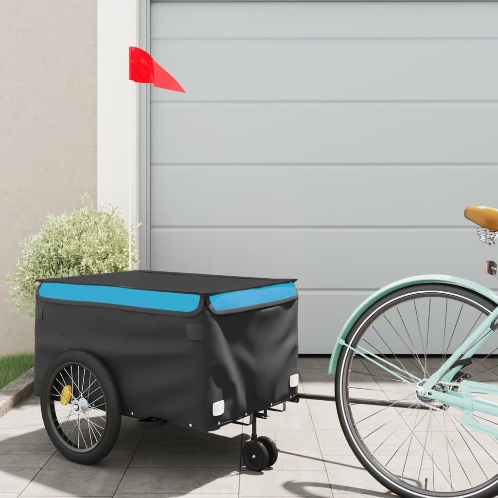 fekete-kék vas kerékpár-utánfutó 30 kg