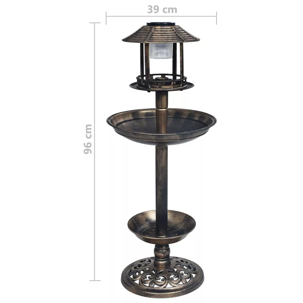 Díszítse egy dekoratív elemmel kültéri környezetét ezzel a kifinomult, mégis szemet gyönyörködtető madárfürdetővel! Ez a gyönyörű udvari kellék hívogató háza minden vendége számára, akár vannak szárnyai, akár nincsenek! Ez az álló madárfürdető könnyű és időjárásálló műanyagból készült, amely garantálja az éveken keresztül történő megbízható használatot. A felső polc madáretetőként használható, amelynek teteje szárazon tartja az eledelt. A nagy tál működhet víztartóként vagy madárfürdetőként is. Az alsó kagyló kiválóan használható ültetéshez. A fürdető emellett tartalmaz egy napelemes LED-lámpát, mely az éjszakai világításhoz járul hozzá. Könnyű összeszerelni és mozgatni. Ezt a terméket nem szabad más háztartási hulladékkal együtt kidobni az Európai Unióban.