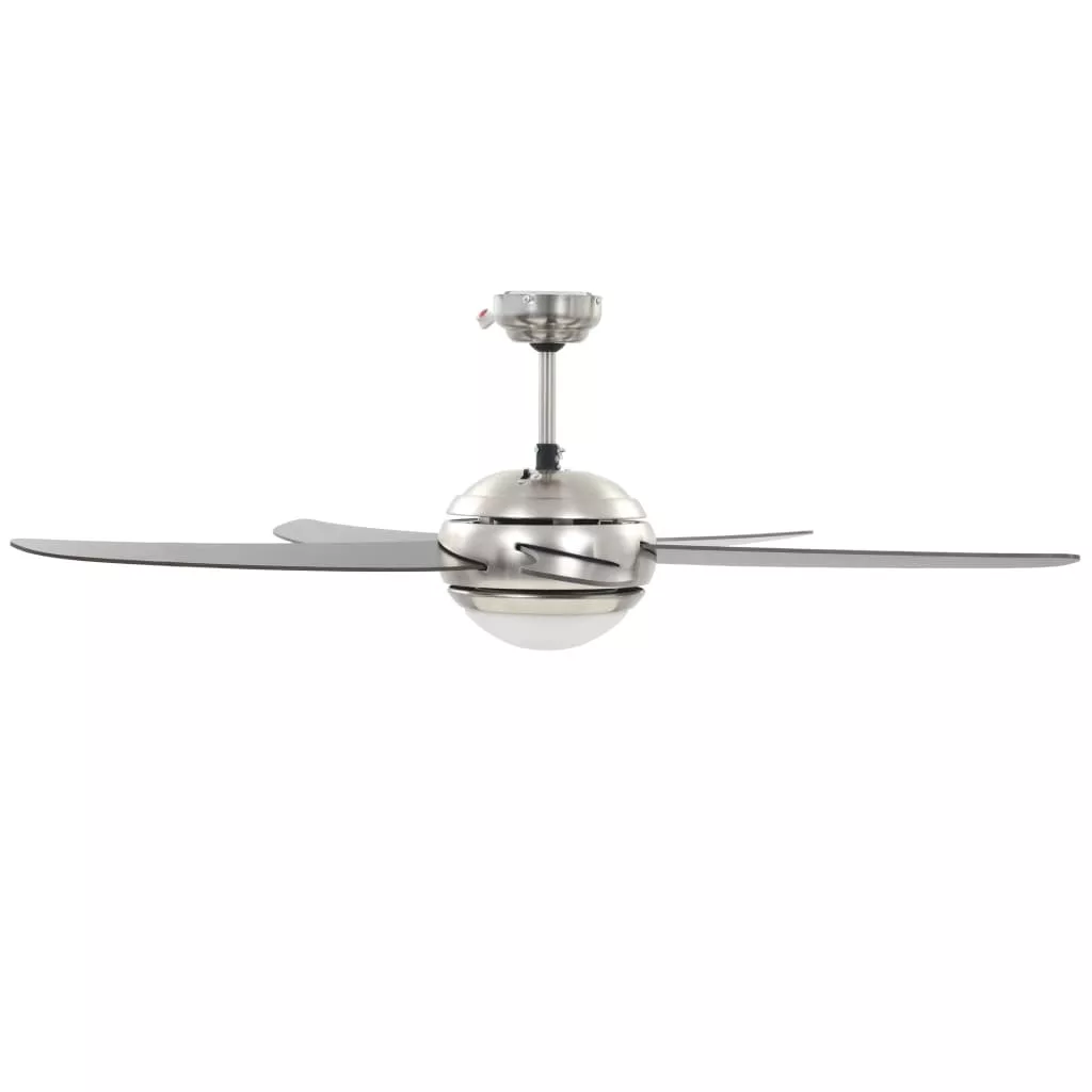 Ez a díszes mennyezeti ventilátor modern küllemével pompásan fog mutatni otthonában! A nagy mennyezeti ventilátor (amelynek teljes átmérője 128 cm) tökéletes légáramlást biztosít szobájában. A ventilátor a hozzá mellékelt távirányítóval kényelmesen vezérelhető. Sebessége 3 fokozatban állítható. A beépített lámpa révén a mennyezeti ventilátor bevilágítja a szobát, és lakóterében kellemes atmoszférát teremt. Összeszerelése egyszerű. Felhívjuk figyelmét, hogy az izzó nem alaptartozék. Ezt a készüléket nem használhatják csökkent fizikai, érzékszervi vagy szellemi képességű, illetve tapasztalattal és tudással nem rendelkező személyek (beleértve a gyermekeket is), kivéve, ha a biztonságukért felelős személy felügyeli őket, vagy utasításokat kaptak a készülék használatára vonatkozóan. Ez a termék nem játék. Ne engedje, hogy gyerekek játsszanak a készülékkel.