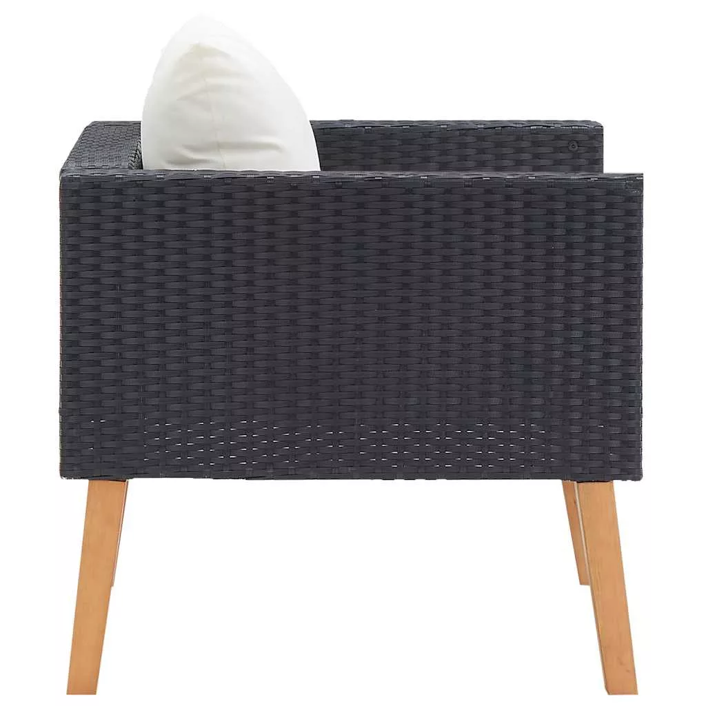 egyszemélyes fekete polyrattan kerti kanapé párnákkal