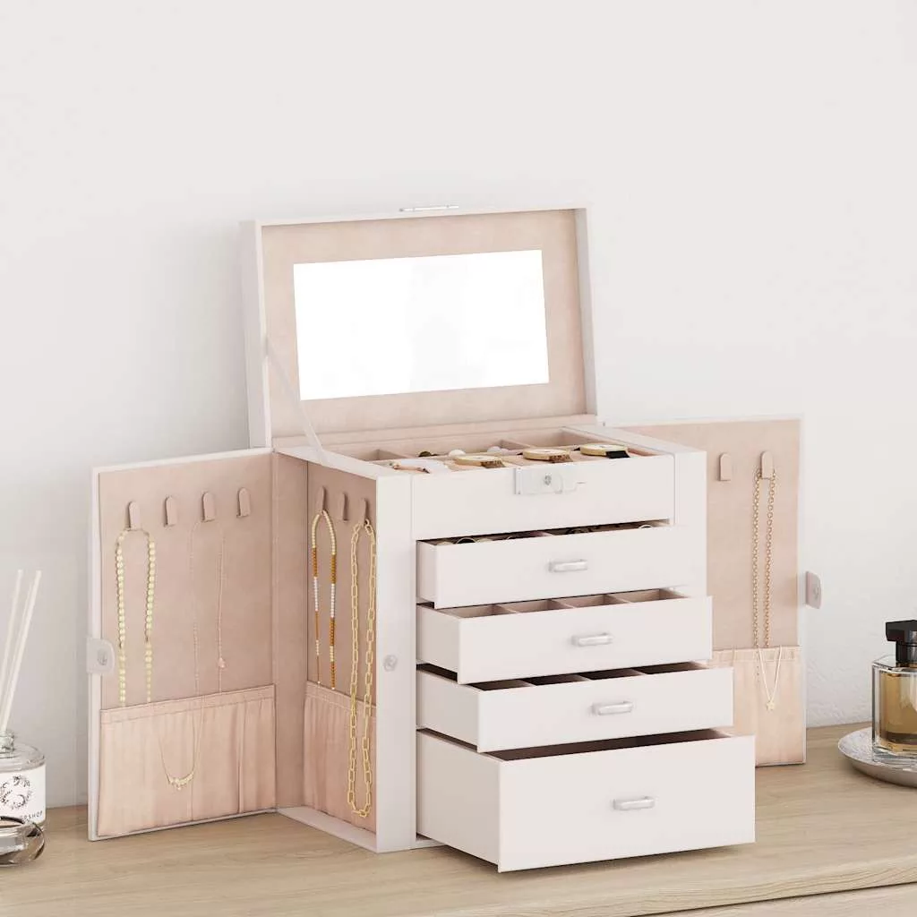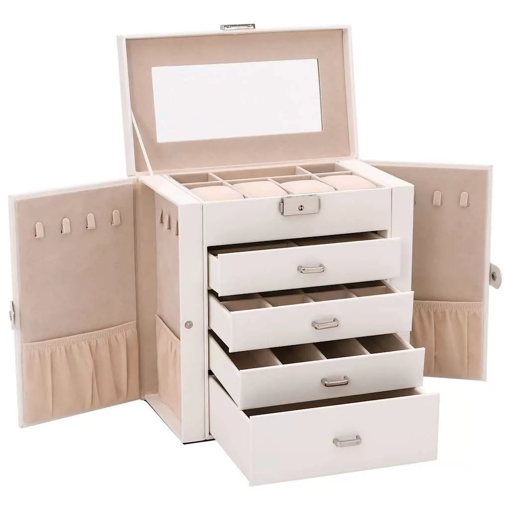 ékszerdoboz 5 rétegű tükörrel zárható fehér színű