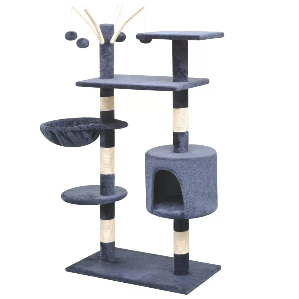 sötétkék macskabútor szizál kaparófákkal 125 cm