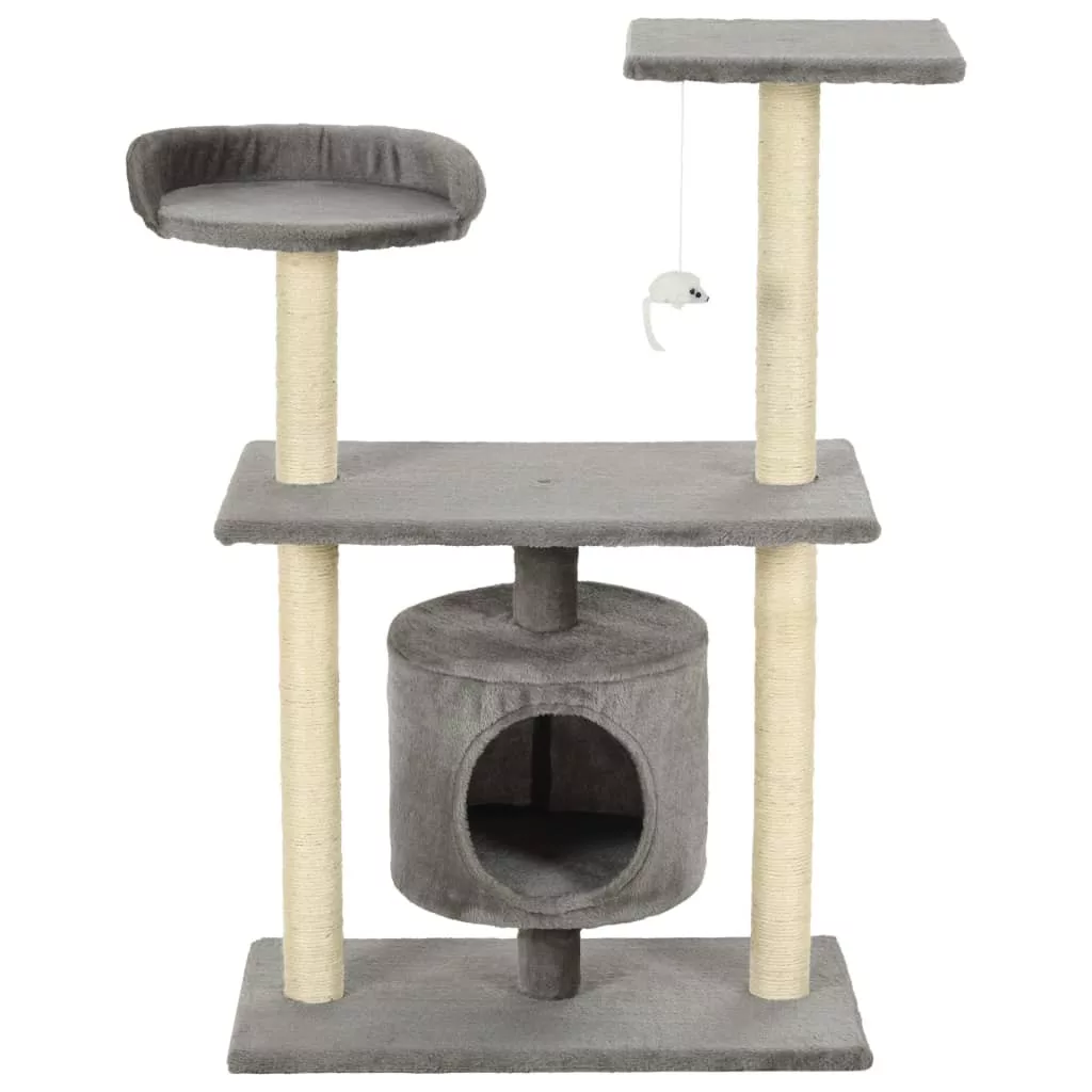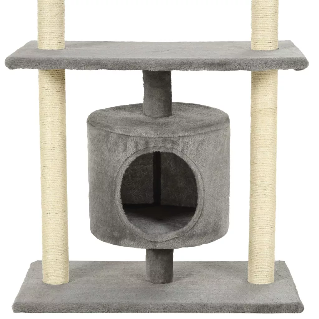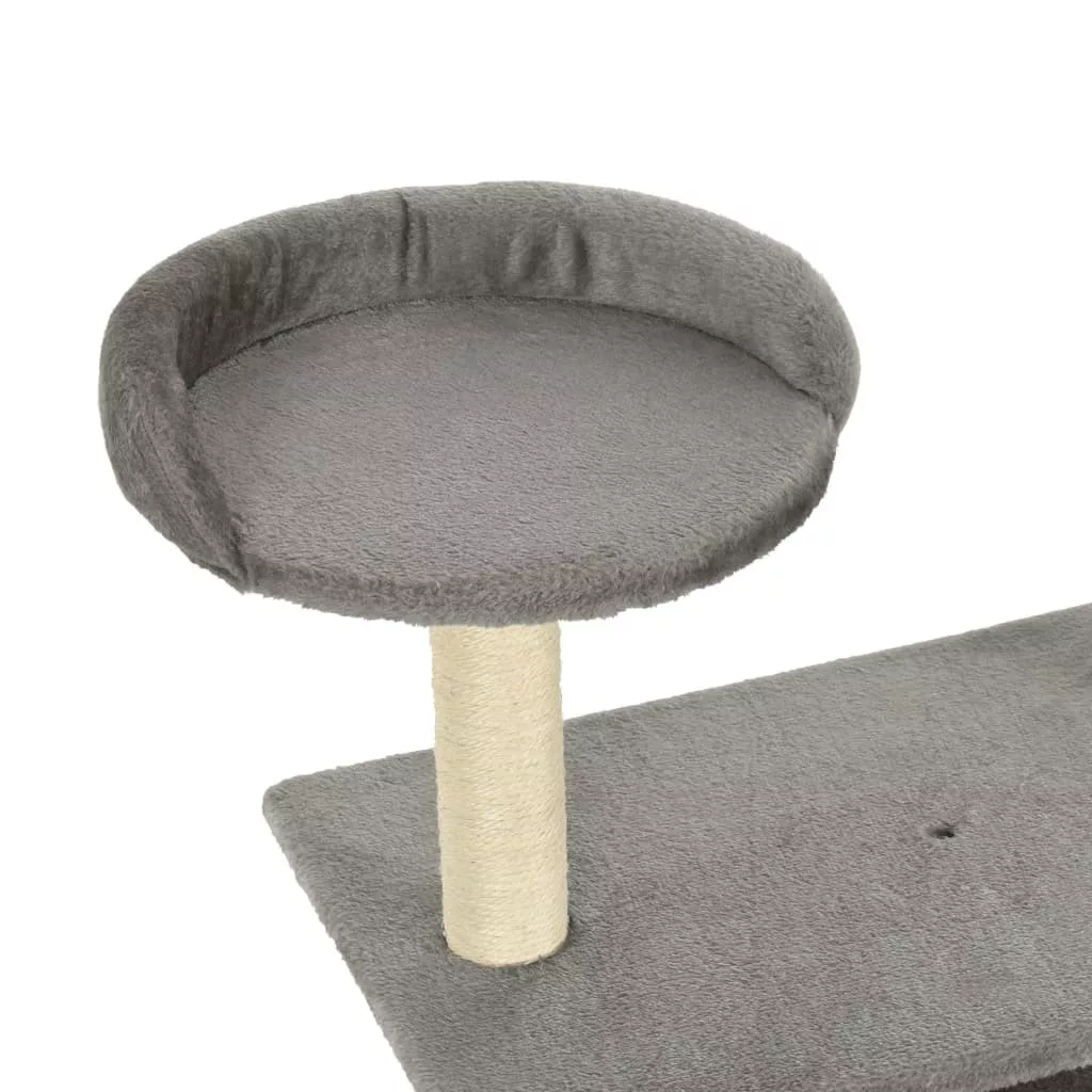 Kölcsönözzön szőrös kedvenceinek egy csipet luxust a a funkciókban gazdag macskafánkkal! Ez a többszintes macskajátszóközpont puha, kényelmes plüssel bevont masszív vázzal tökéletes menedék macskáinak a kaparászáshoz, mászáshoz, pihenéshez, bujkáláshoz és alváshoz. Szőrös kis kedvencei élesíthetik a karmukat a szizálkötéllel körbetekert kaparófákon, melyeken egészséges módon kiélhetik kaparóösztönüket. Élvezni fogják, ahogy kergethetik egymást, miközben fel-le ugrálnak ezen a szórakoztató játszóközponton. A macskabútor tetején van egy lógó játék, amely leköti a kíváncsi macskákat. Ha kijátszották magukat, kis barátai imádni fognak a felső emelvényeken pihenni, ahonnan jobban megfigyelhetik környezetüket. A hangulatos házikóban akár el is bújhatnak, hogy szundítsanak egyet. Mindezekkel a szórakoztató funkciókkal ez a macskajátszóház szőrös barátai kedvenc helyévé fog válni!