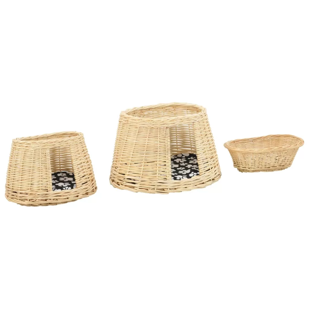Ezekben a kézzel készített macskakosarakban macskái kedvük szerint pihenhetnek. Aranyos és kompakt kialakításának köszönhetően remekül illenek bármilyen lakberendezési stílushoz. A fából készült macskakosárban jót pihenhetnek kis barátai, főként a hideg téli hónapokban, amikor be vannak zárva a lakásba. A macskakosár kivehető párnákkal lett ellátva, amelyeken macskái vagy más kisállatai feküdhetnek. Sőt, mindhárom része mozgatható, így könnyű tárolni. A természetes fűzfából készült macskaházat könnyű összeszerelni és karbantartani.